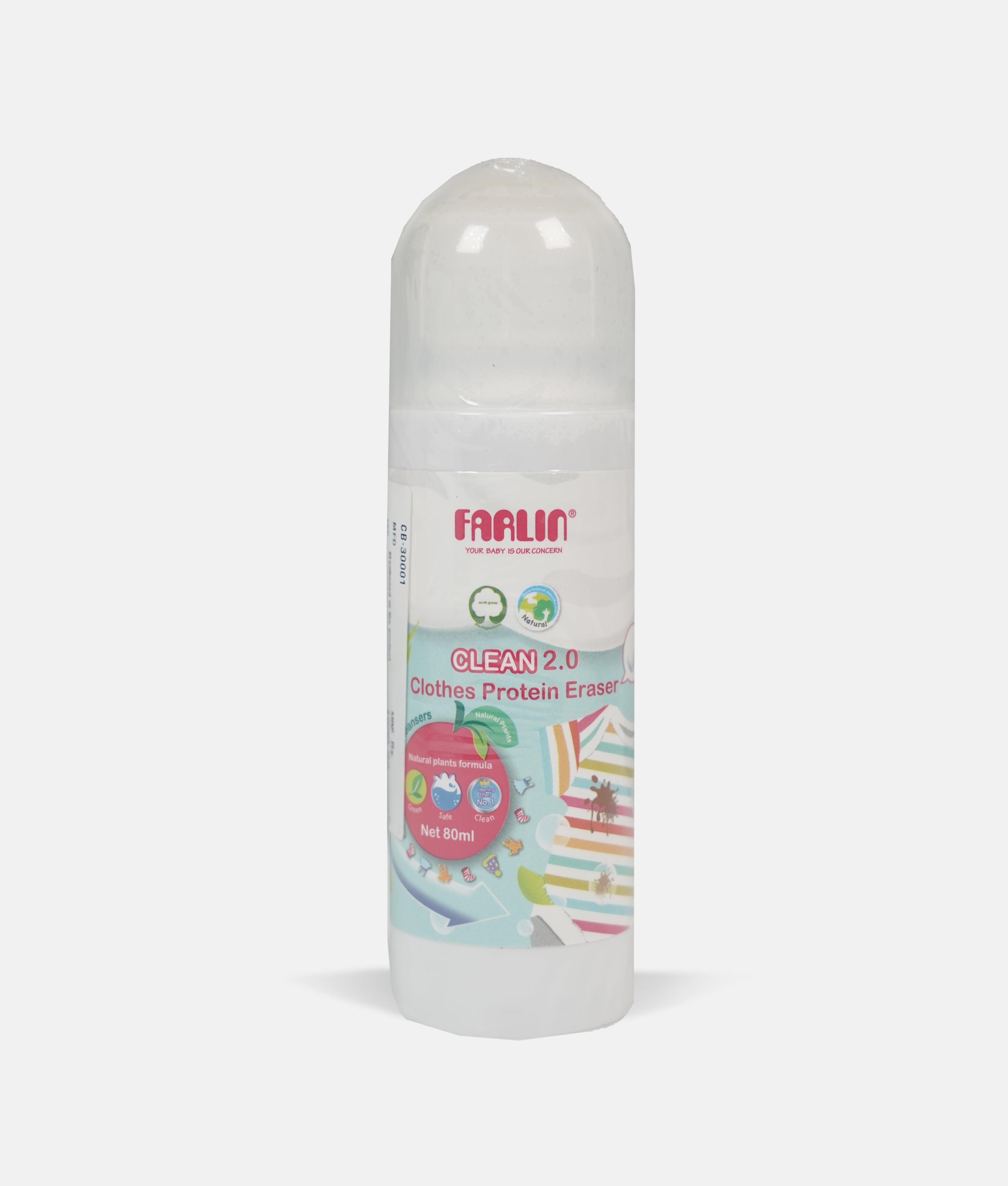 Farlin Cloths Protein Eraser Clean 2.0. This eco-friendly, plant-based formula is specially designed to tackle food, milk, and organic marks on delicate baby garments without harsh chemicals. Gentle enough for sensitive skin, powerful enough to restore your little one's clothes to pristine condition. Say goodbye to stain stress and hello to fresh, clean fabrics—naturally.