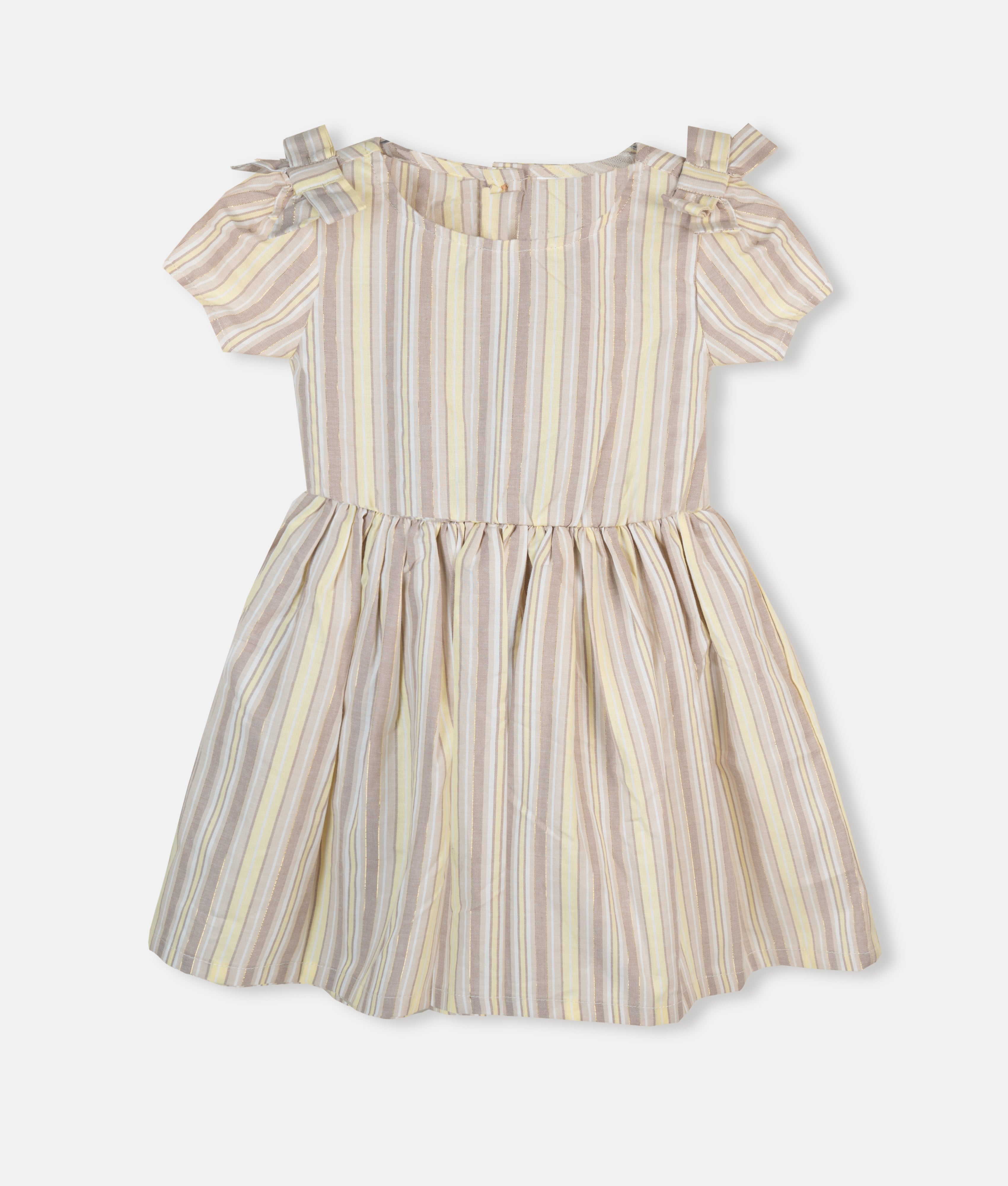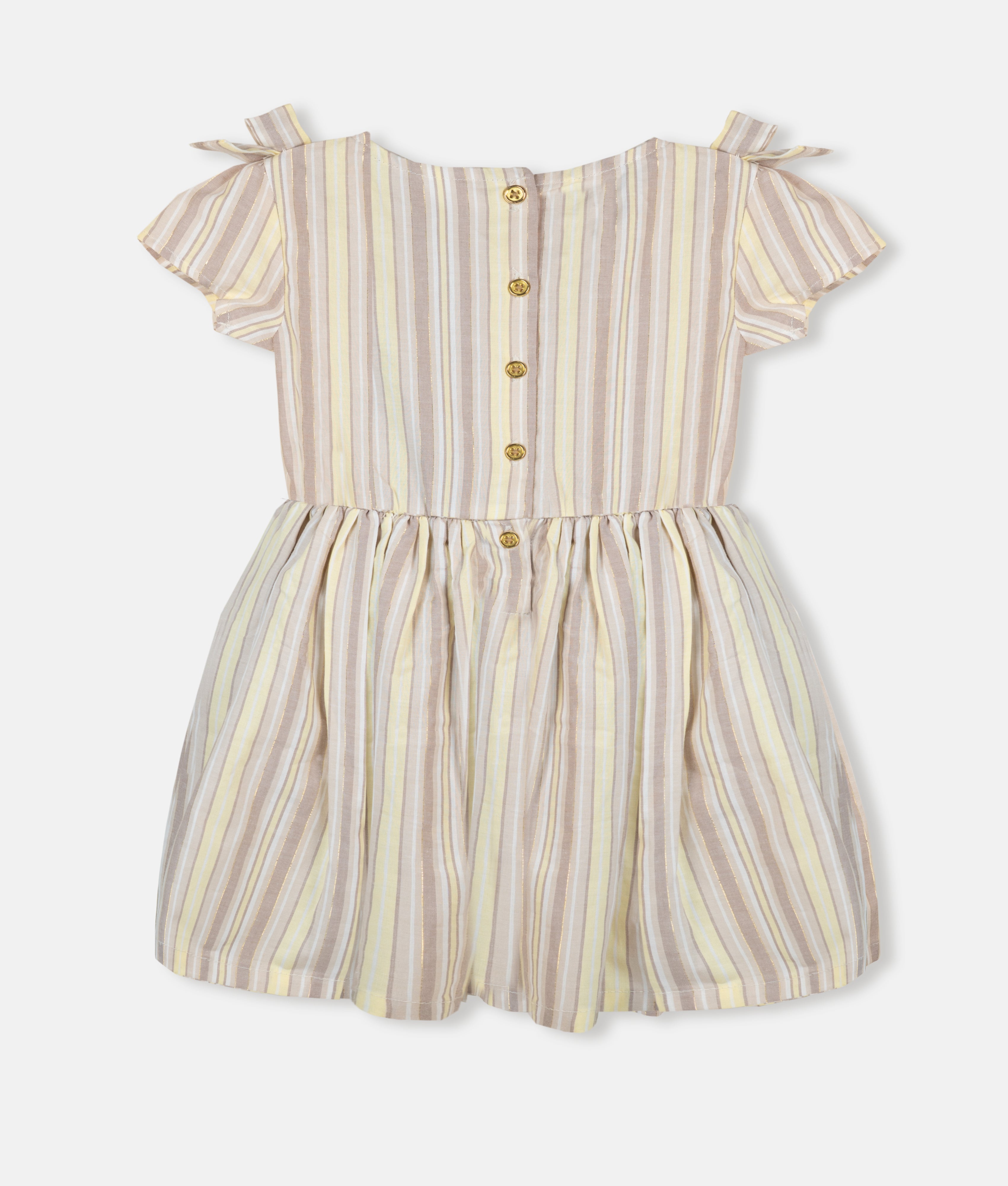 Dress your little one in the Golden Sands Stripes Girls Dress for a fun and festive look perfect for birthday parties and special occasions. With its cheerful stripes and comfortable fit, this dress lets her play and twirl all day long while standing out with a splash of golden charm. Ideal for creating joyful memories and picture-perfect moments!