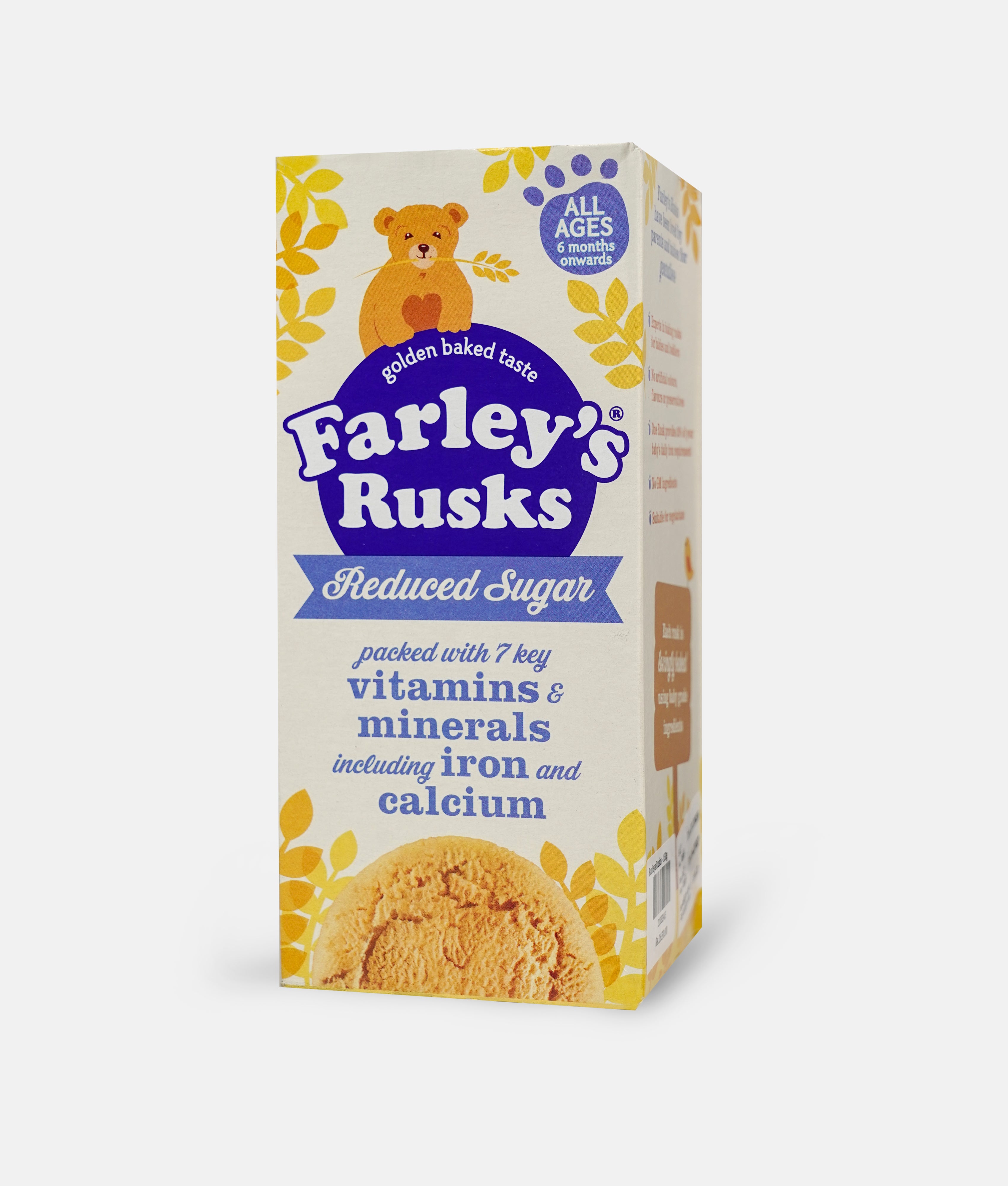 Generations of parents have trusted Farley's Rusks to support their little ones' growth and development. These lovingly baked rusks are crafted with baby-grade ingredients and packed with nutritionāeach one delivers 20% of your baby's daily iron needs. Free from artificial colours, flavours, and preservatives, plus made with no GM ingredients and suitable for vegetarians, they're a wholesome choice parents can feel good about. Perfect for babies and toddlers discovering solid foods, Farley's brings expertise, care, and taste to every bite.