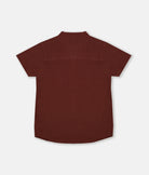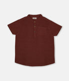 Maroon Chinese Collar Short Sleeved Boys Shirt