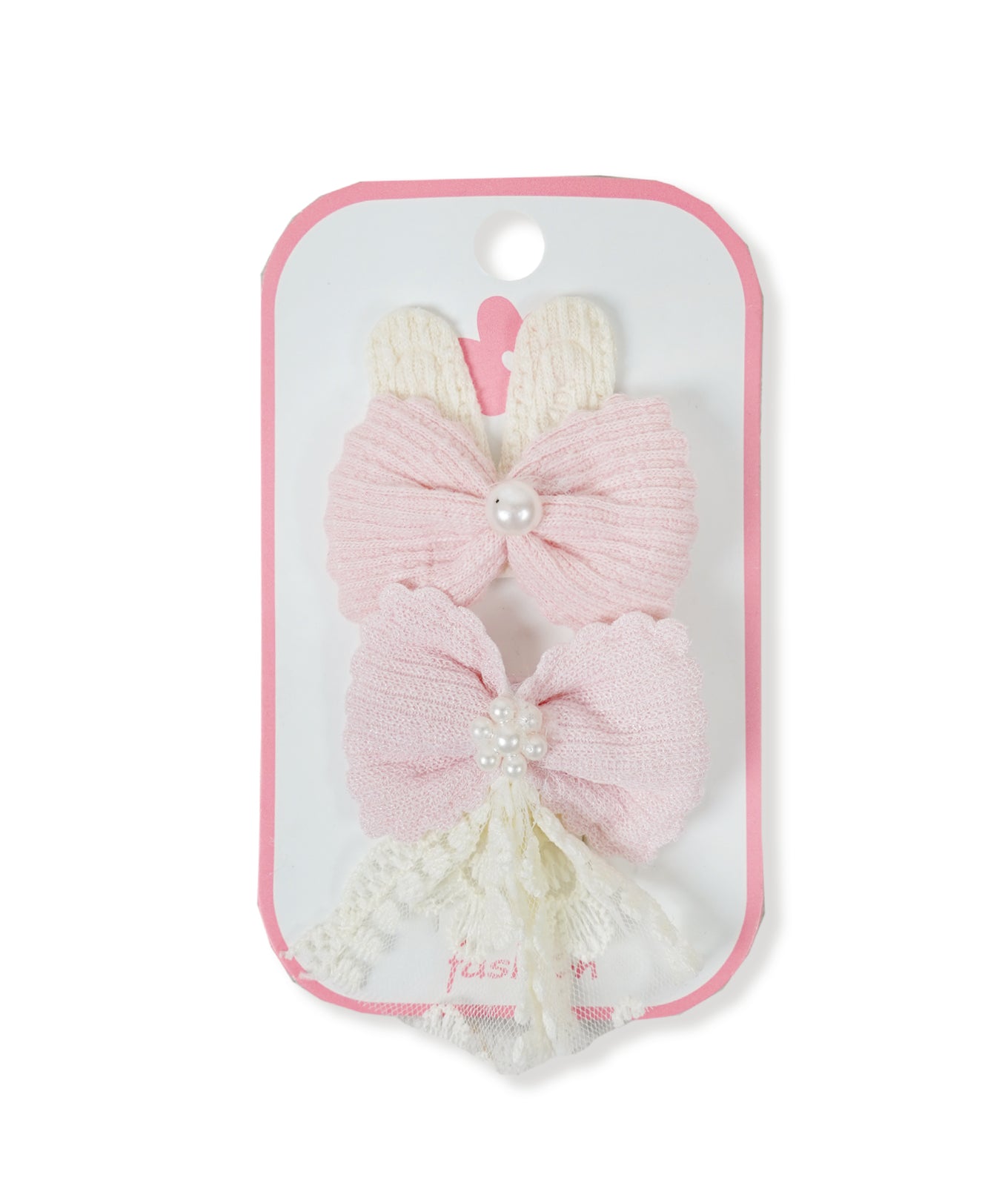 Pink Bunny Bow Hair Clips 2Pcs - Pink