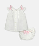 Perfect for every occasion—from everyday playdates to special celebrations. This charming baby girls dress and bloomer set features a delicate pink ribbon design that's both sweet and versatile. Crafted from 100% cotton, it's soft against delicate skin and easy to care for. The coordinated bloomer keeps your little one comfortable and modest while she plays, crawls, or dances. Ideal for photos, parties, or simply looking adorable all day long.