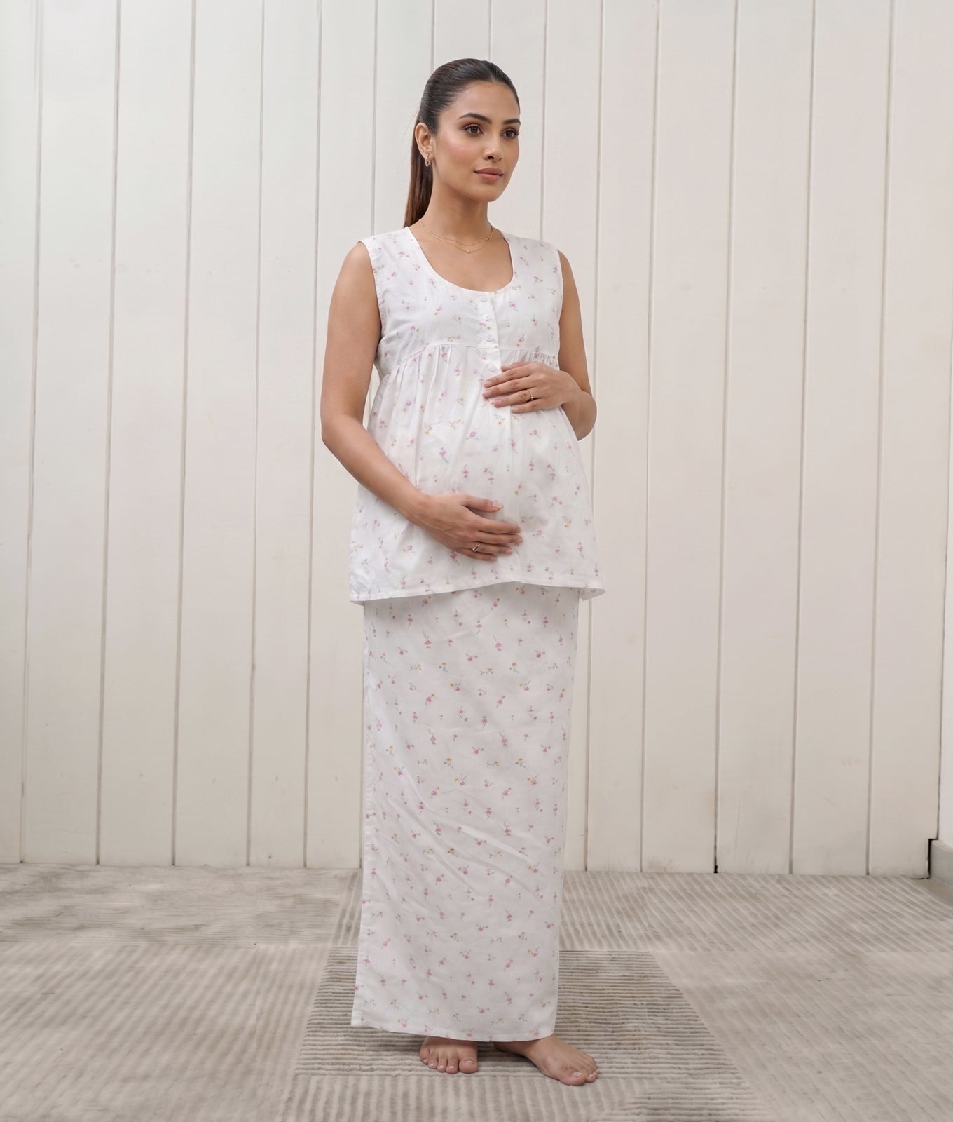 Pinky Floral Maternity 2Pcs Set - White