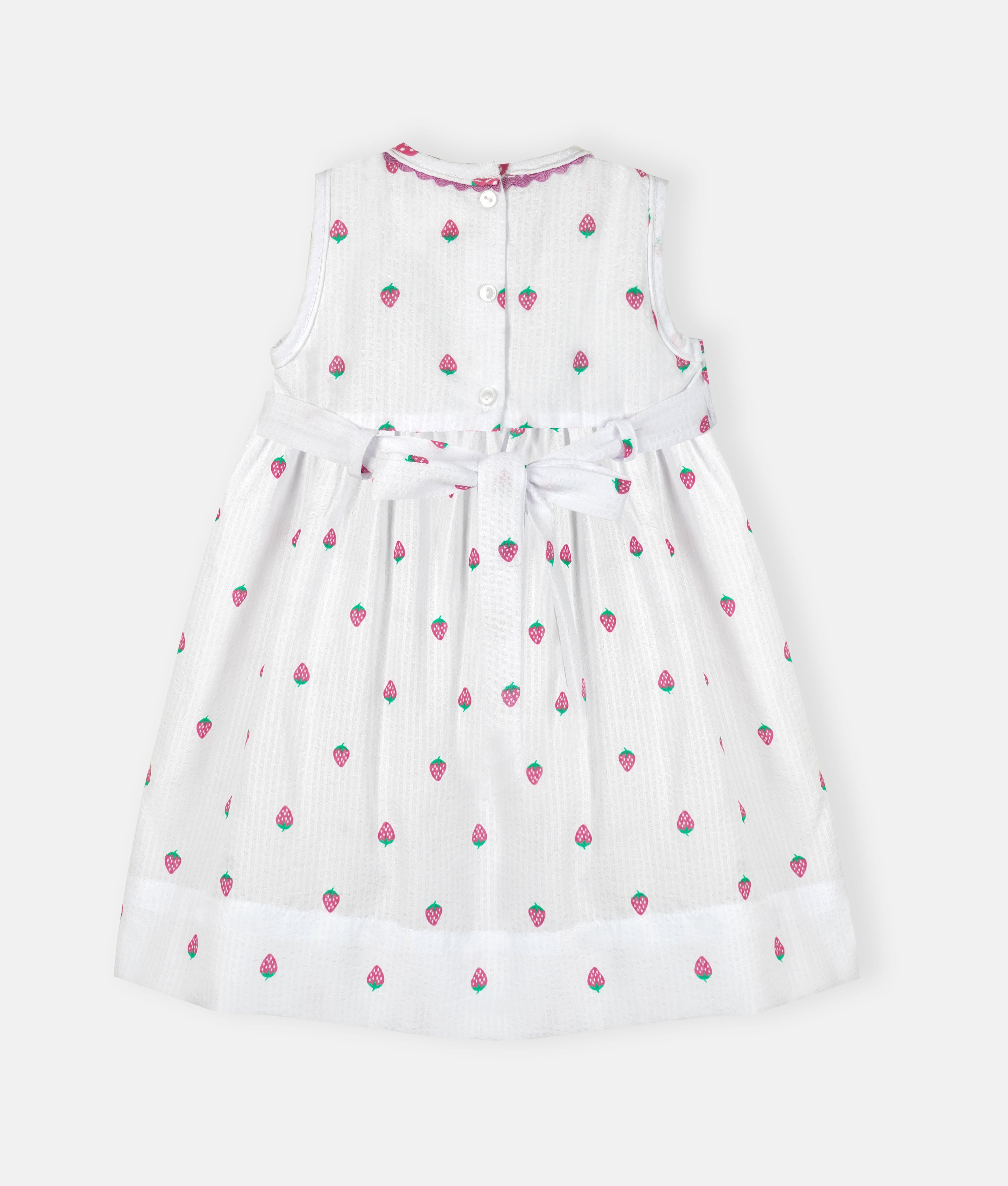Dress your little one in the Strawberry Fields Stripe Smocked Girls Dress - White, perfect for school occasion parties. Its charming smocked detail adds a touch of sweetness, while the comfortable fabric lets her play and twirl with ease. Bright and joyful, this dress ensures she stands out with a playful, timeless style at any celebration.