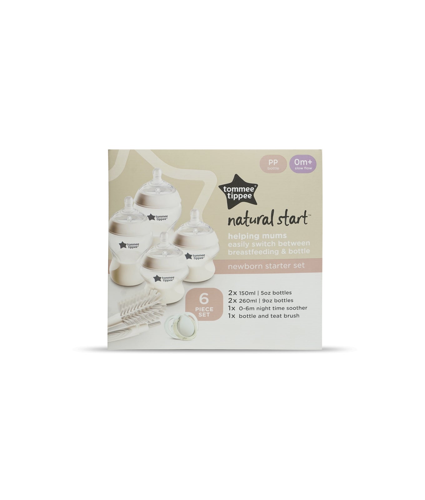 Introducing the Tommee Tippee Newborn Starter Set β designed to make the transition from breast to bottle seamless and natural. This 6-piece collection features our most breast-like bottle yet, engineered specifically for newborns from birth onwards. The soft, flexible silicone teat mimics the natural feel and movement of breastfeeding, allowing babies to latch and feed with familiar comfort. The innovative anti-colic valve works to keep gas away from your baby's tummy, reducing discomfort and fussiness during feeds. Perfect for parents combining breast and bottle feeding, this starter set provides everything you need for smooth, stress-free mealtimes. The slow flow design is ideal for newborns, supporting their natural feeding rhythm and development.