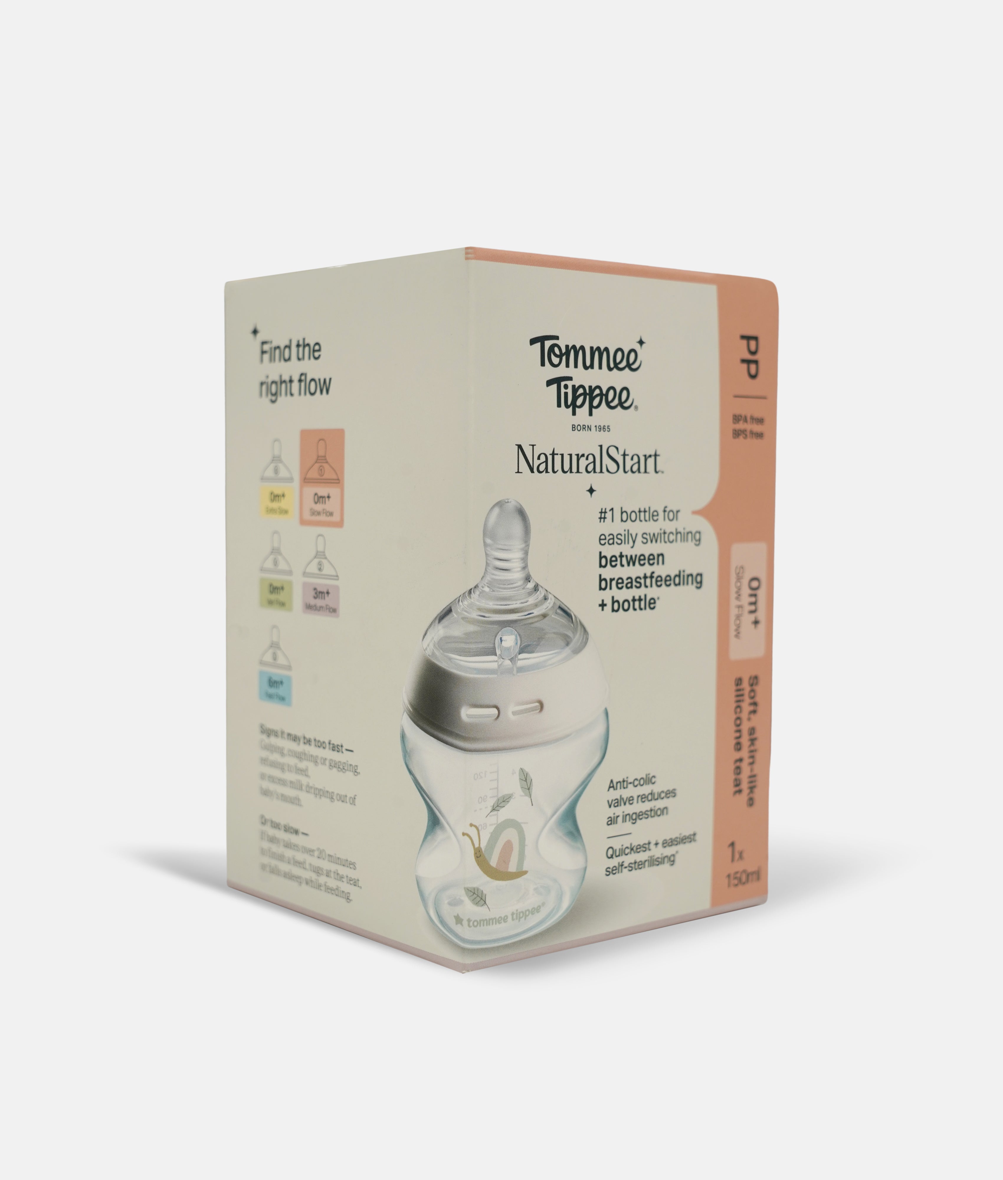 Tommee Tippee Snail Decor Natural Start Baby Bottle - 0m+ Slow Flow | 150ml