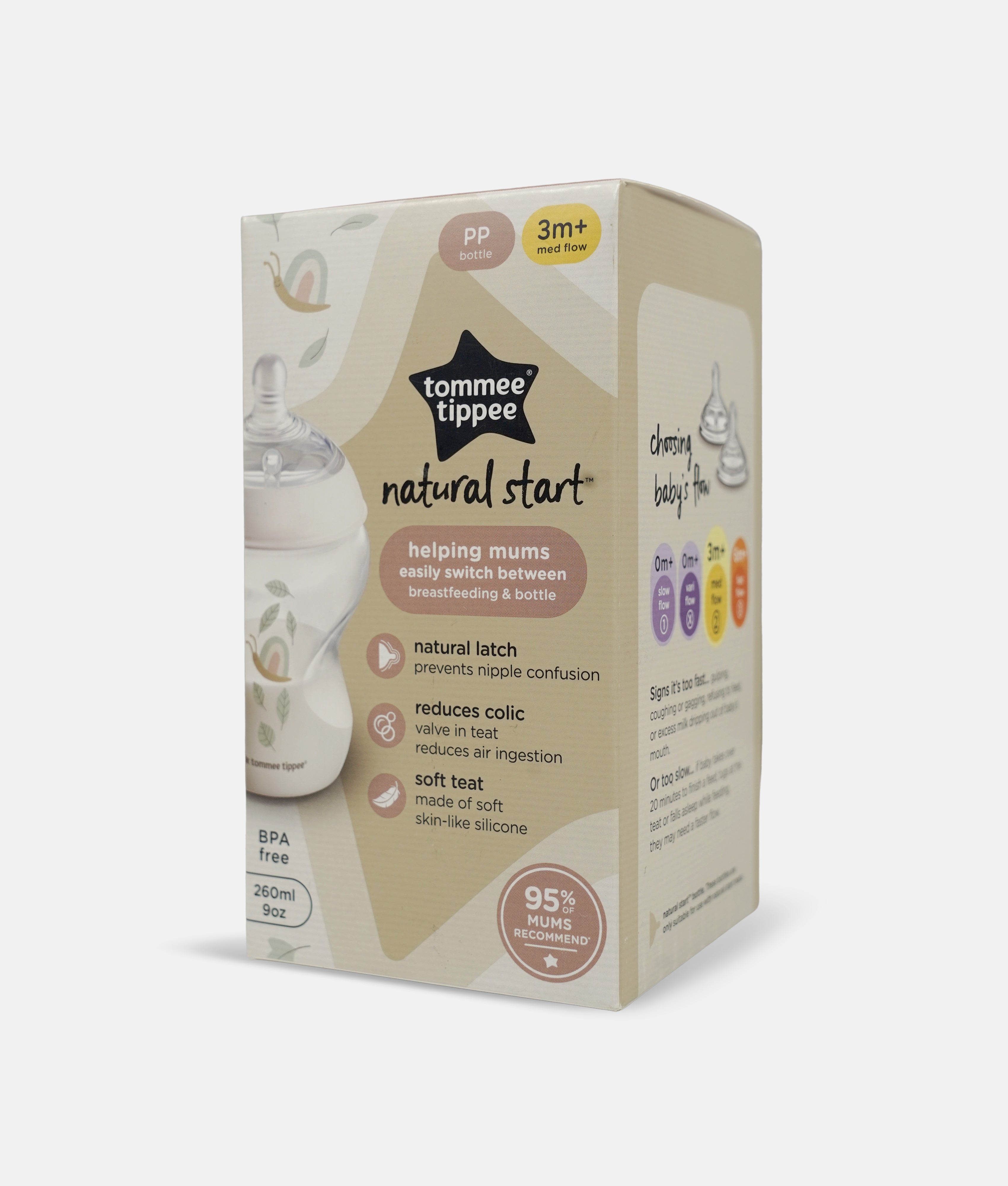 Tommee Tippee Snail Decor Natural Start Baby Bottle - 3m+ Med Flow | 260ml