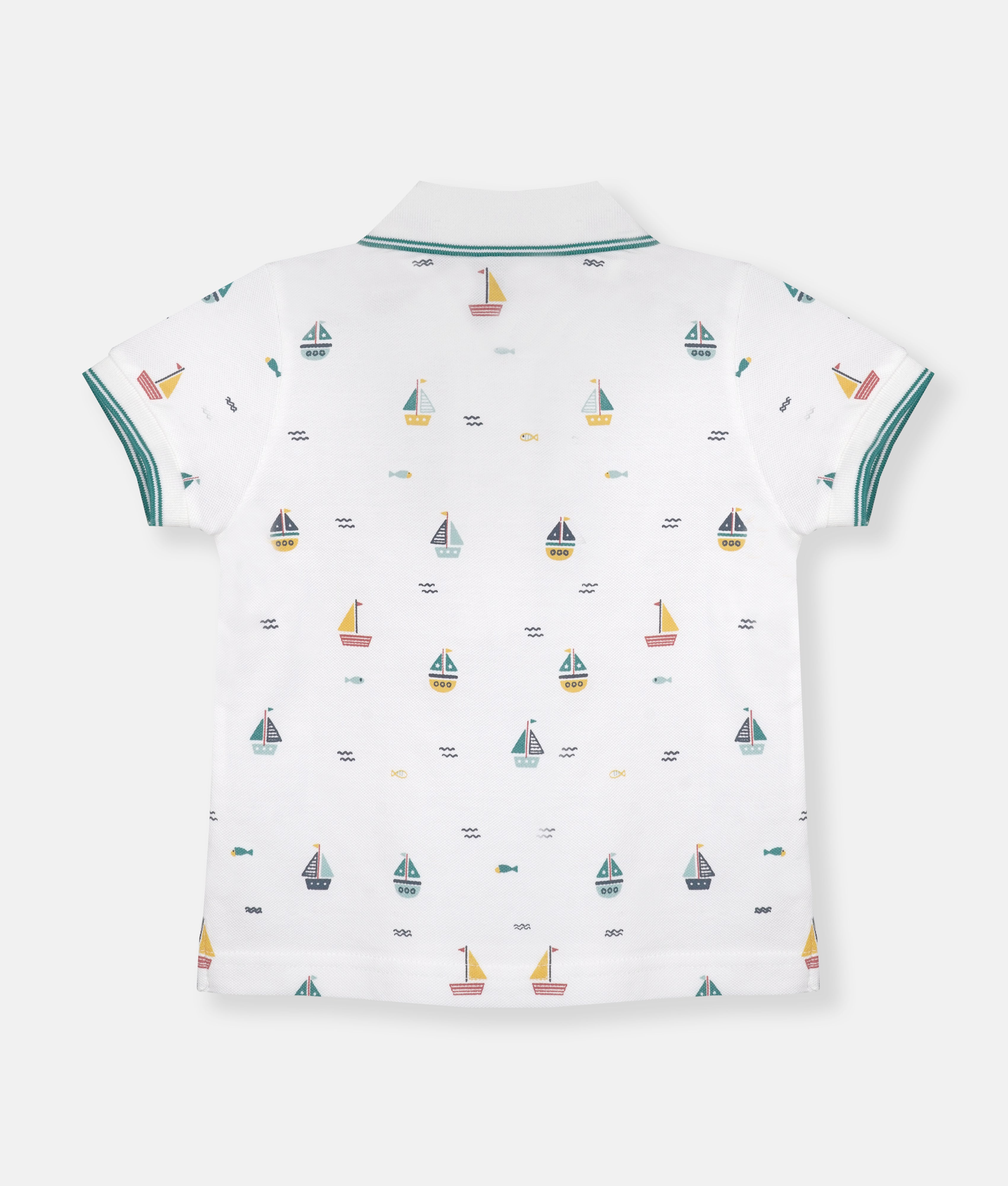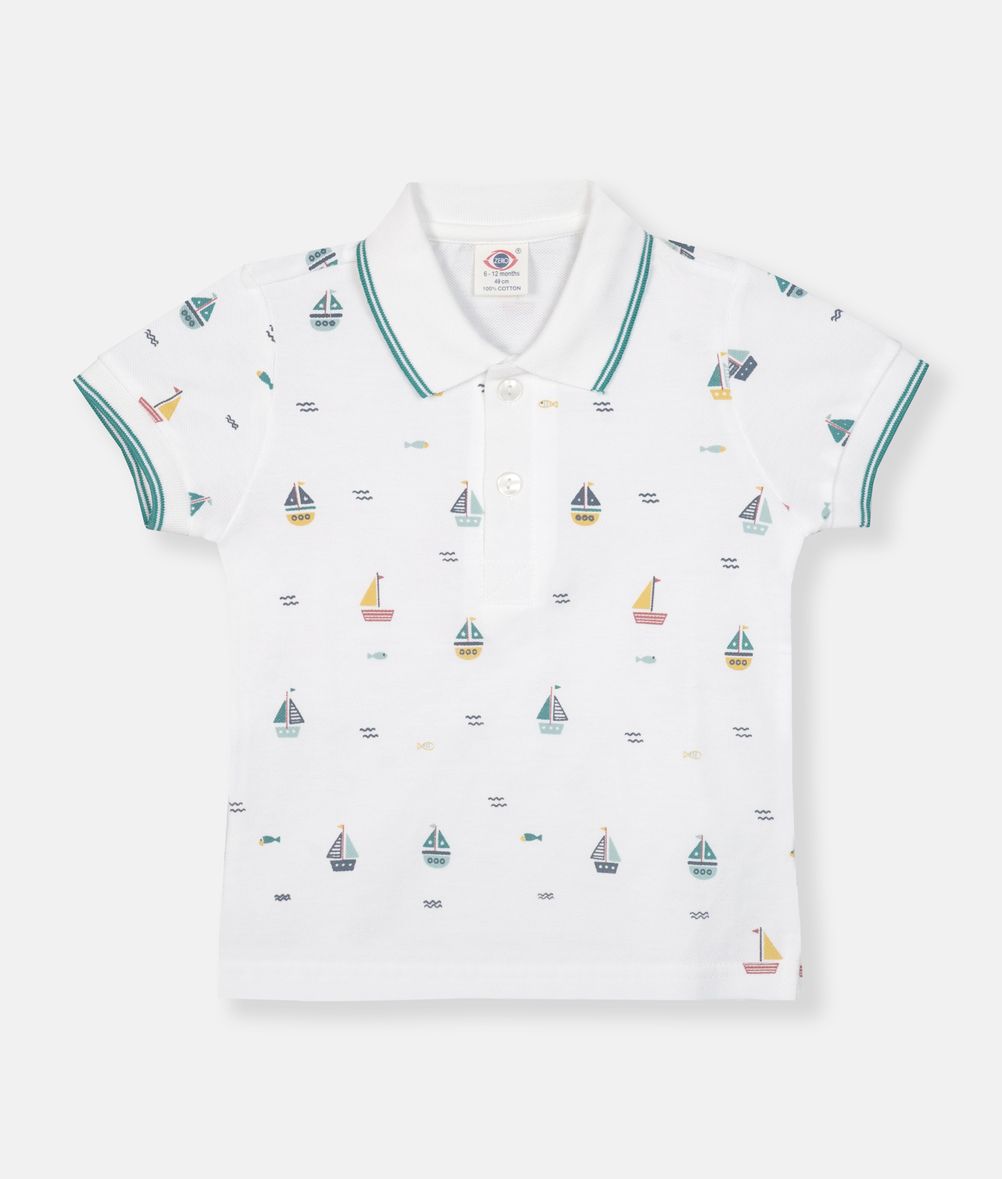 White Boys T-Shirt - Boat Print Green Border playtime with this cheerful cream tee featuring a mini vehicle print and vibrant green border. Designed for active boys who are always on the move, this shirt combines soft comfort with eye-catching graphics that spark imagination. The relaxed fit allows freedom to run, jump, and explore, while the durable fabric holds up to everyday adventures. Perfect for casual outings, school days, or weekend fun—a wardrobe essential that keeps pace with your little one's energy and style.