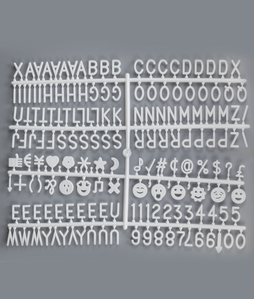 - Includes 300-piece-set .75″ letters/numbers/punctuation (disassembly required by customer)