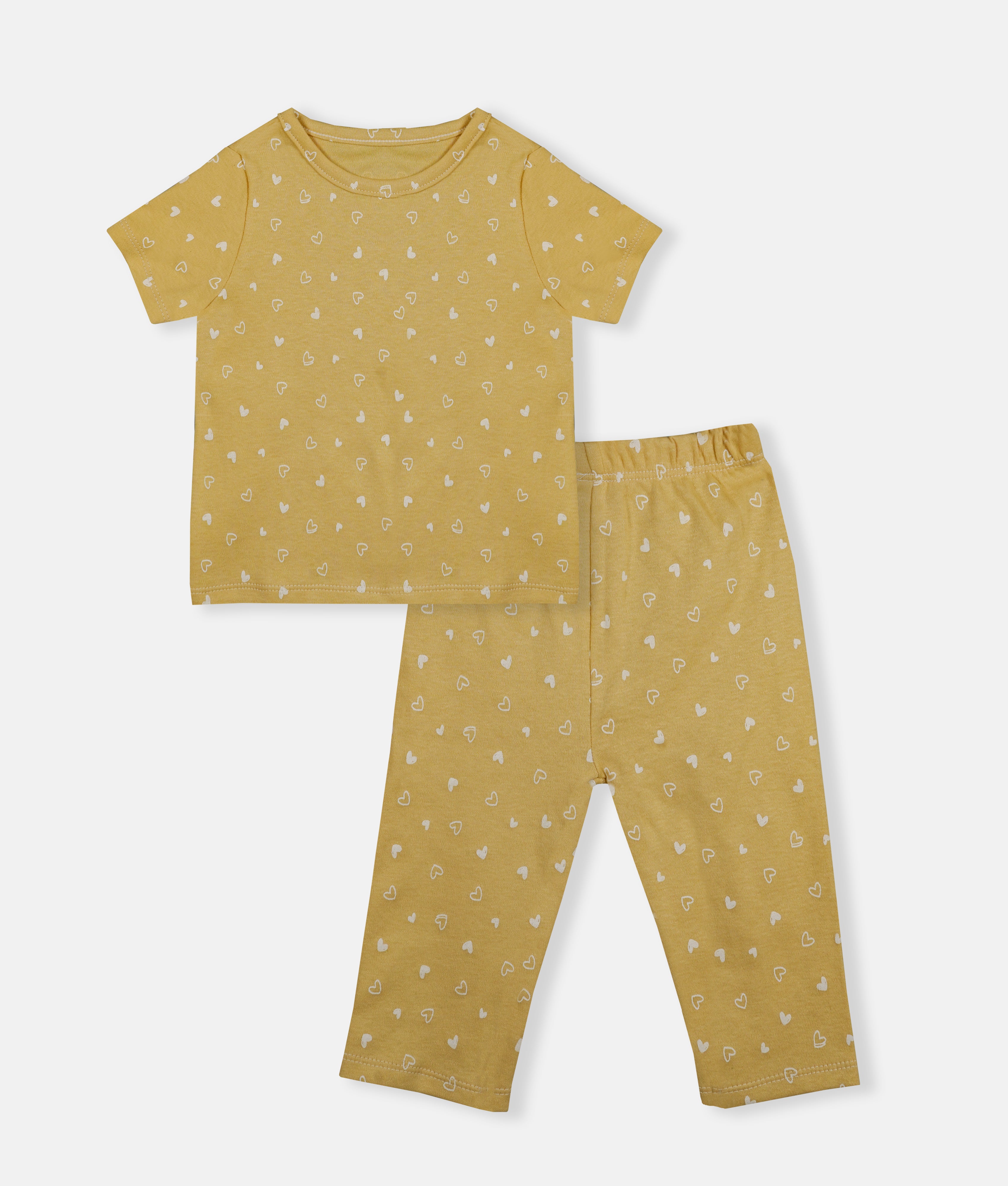 Golden Heart Print 2Pcs Baby Pyjama Set