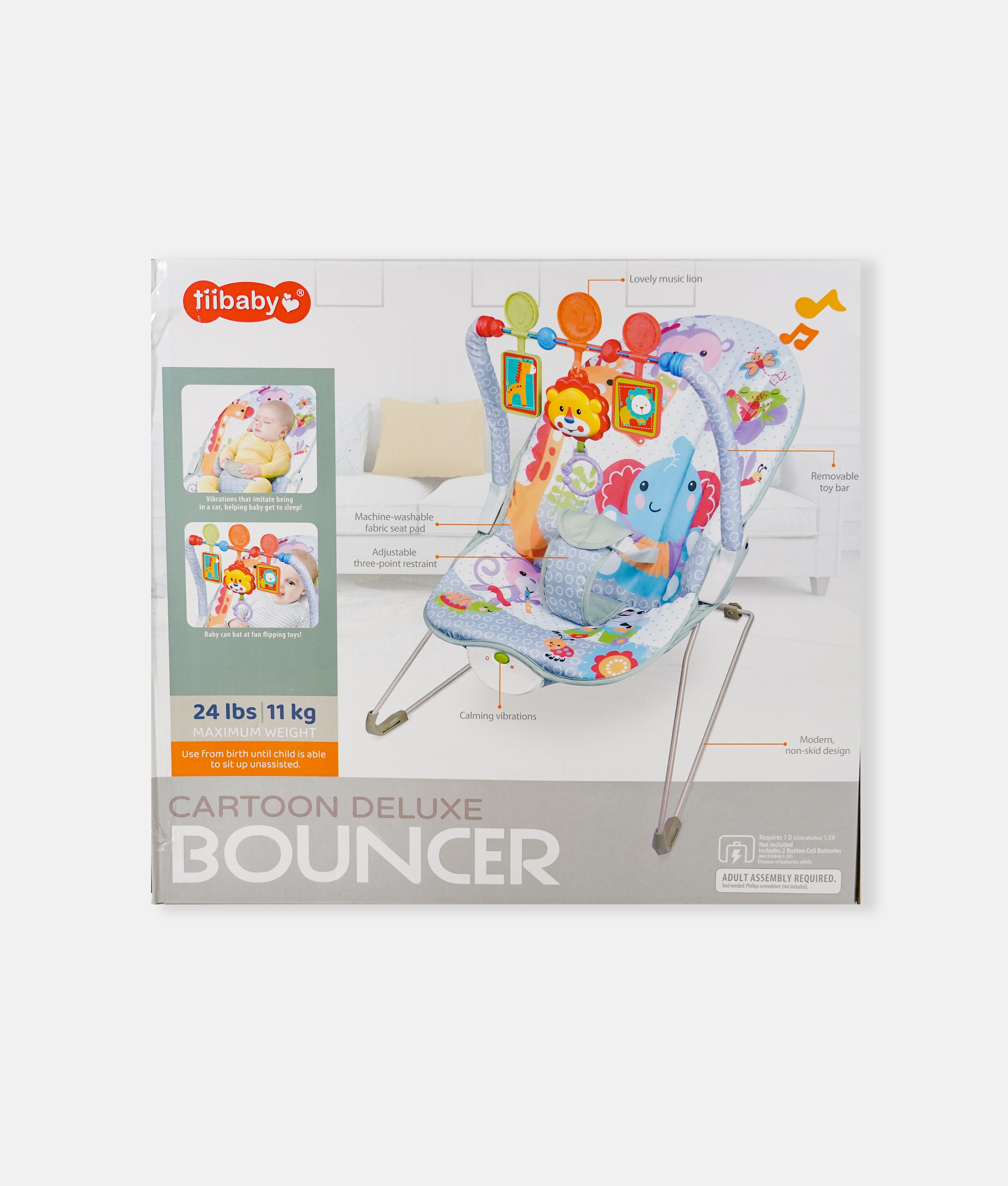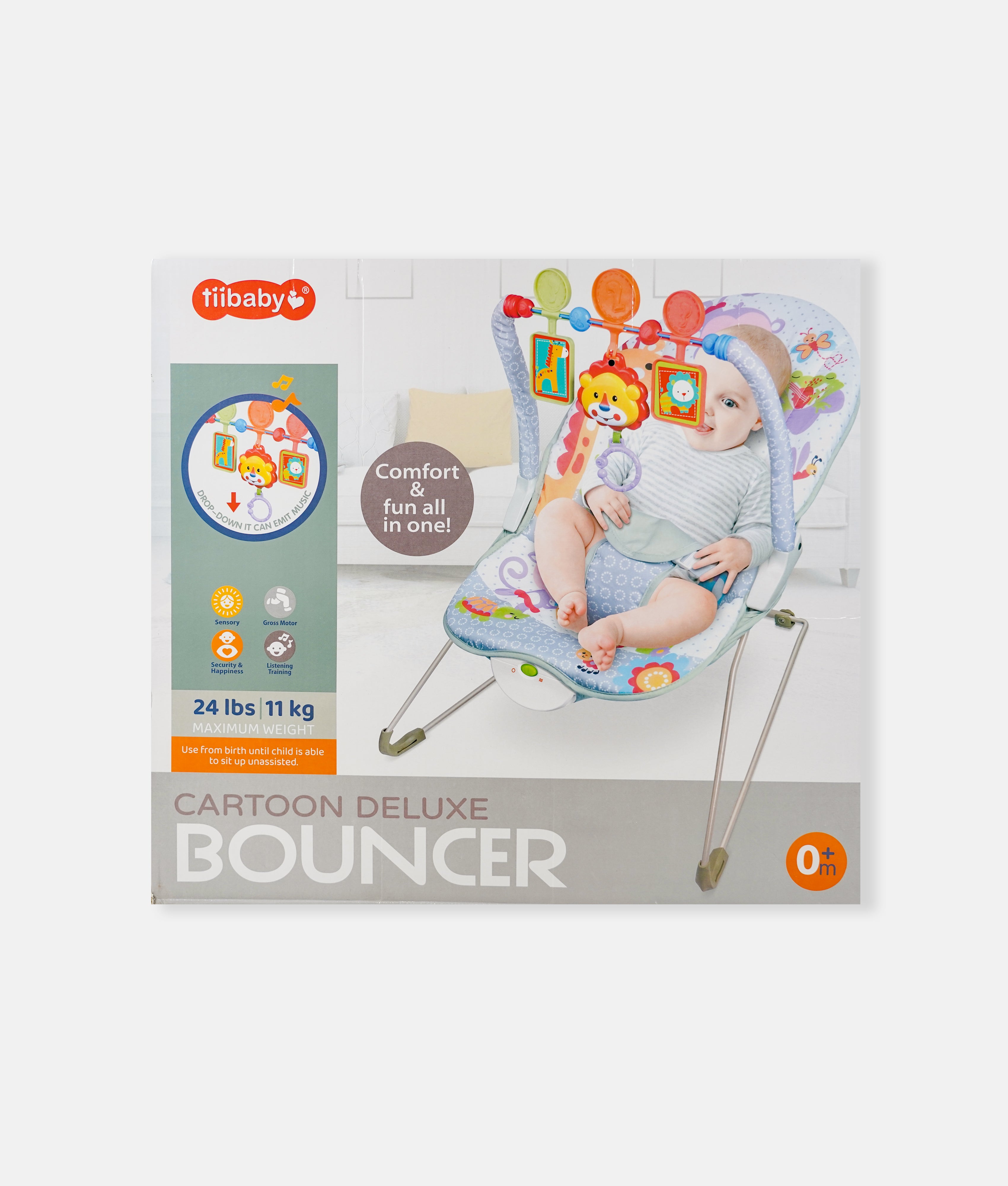 Baby Cartoon Deluxe Bouncer - Grey Green