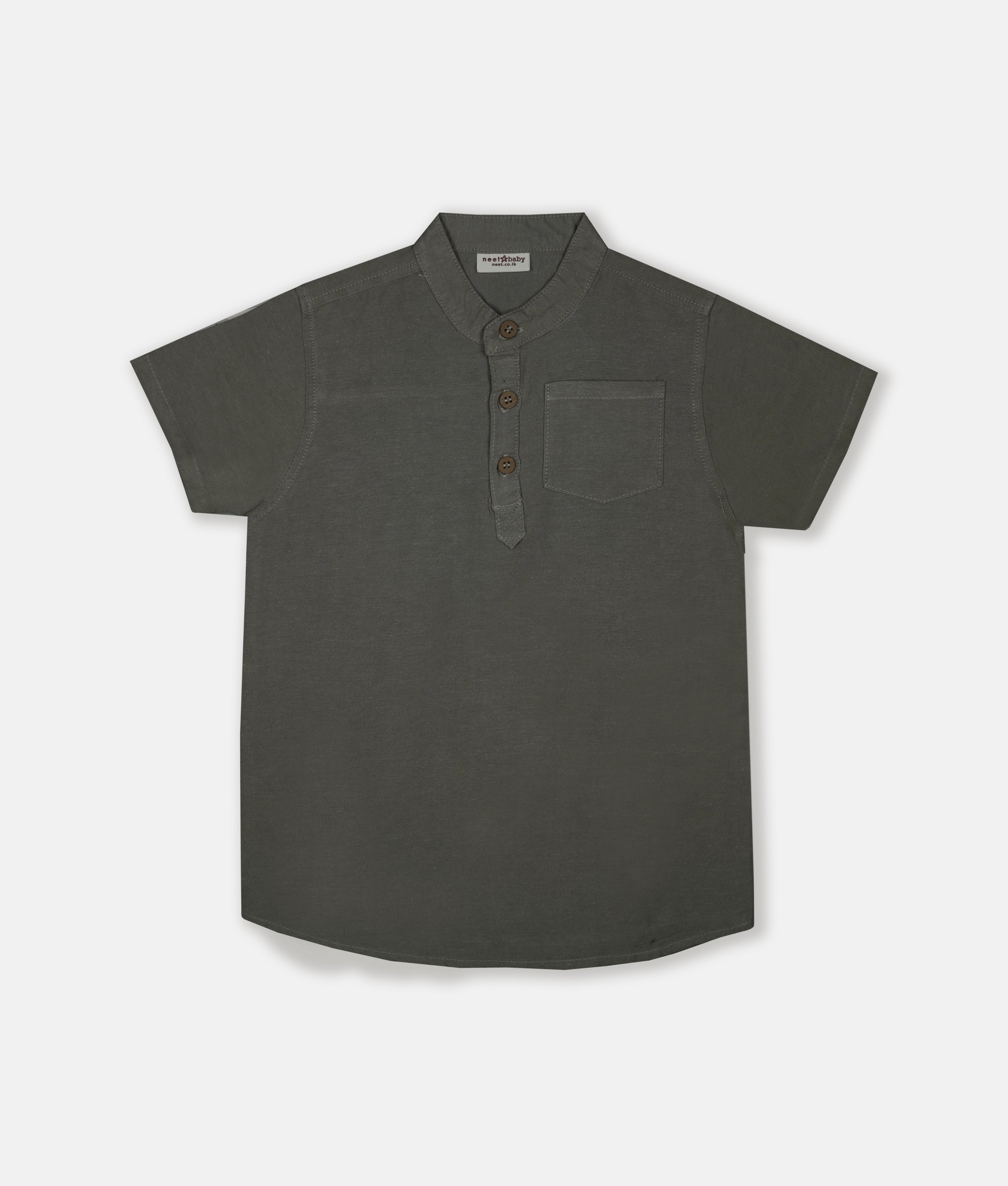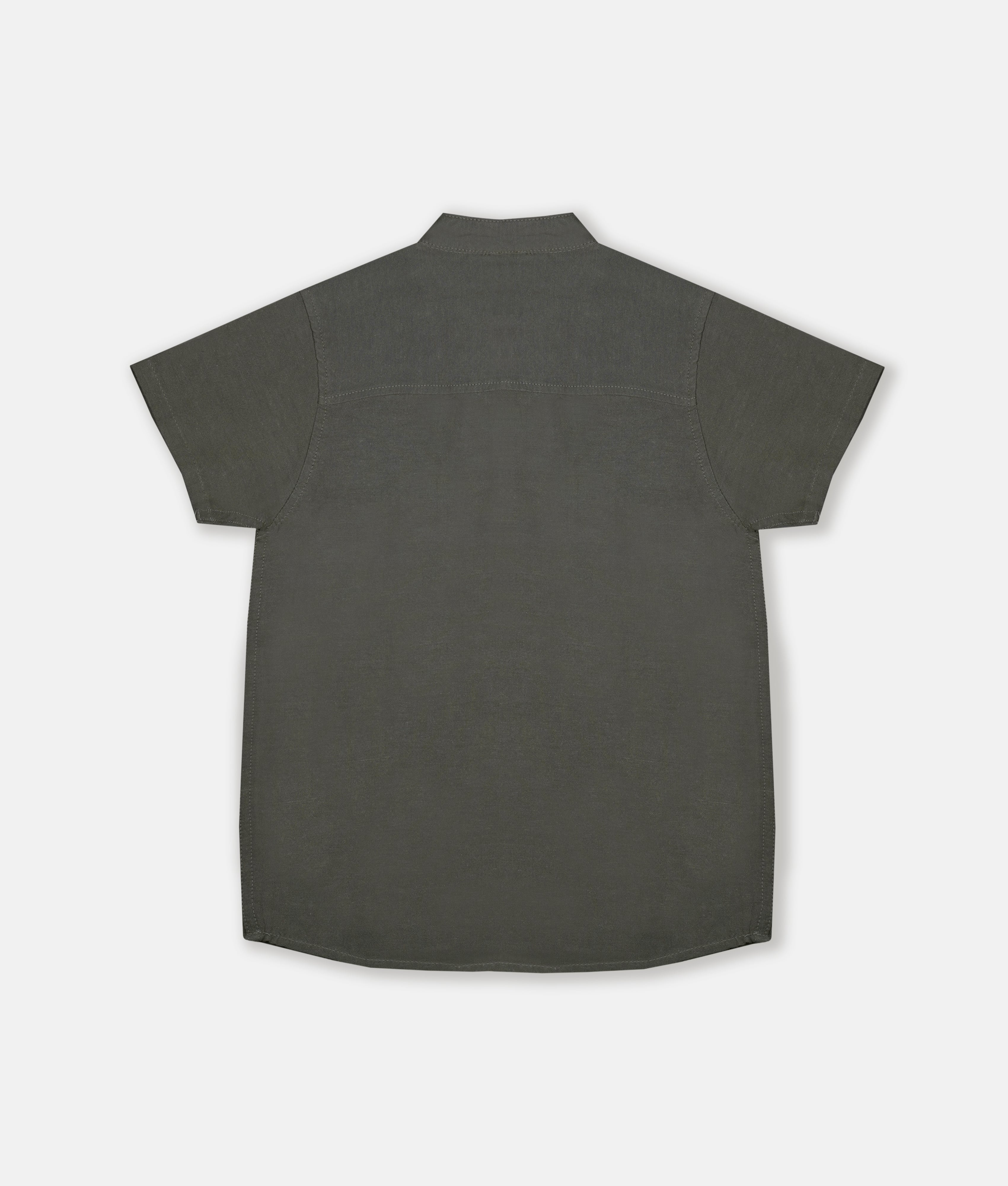Moss Green Chinese Collar Short Sleeved Boys Shirt