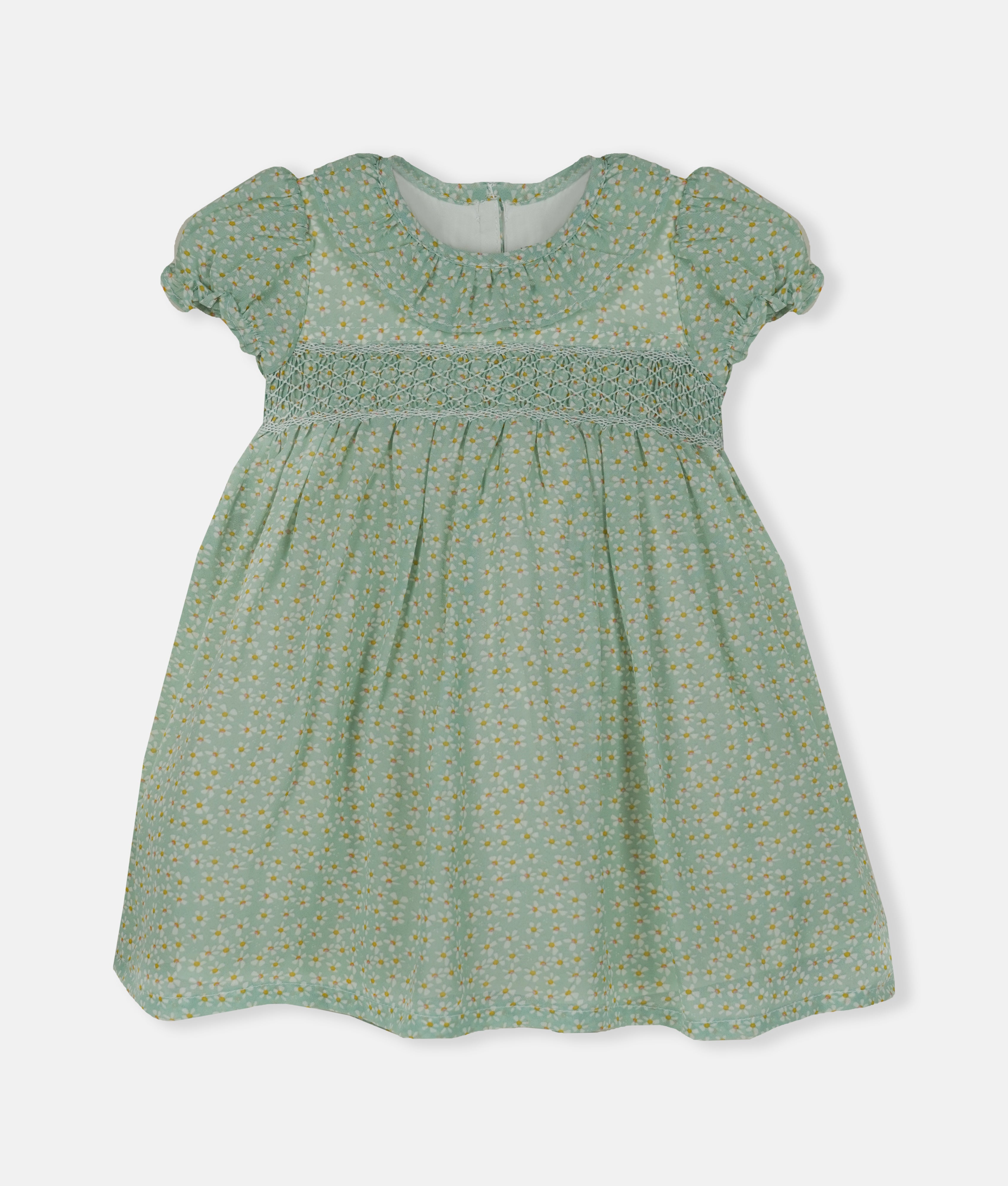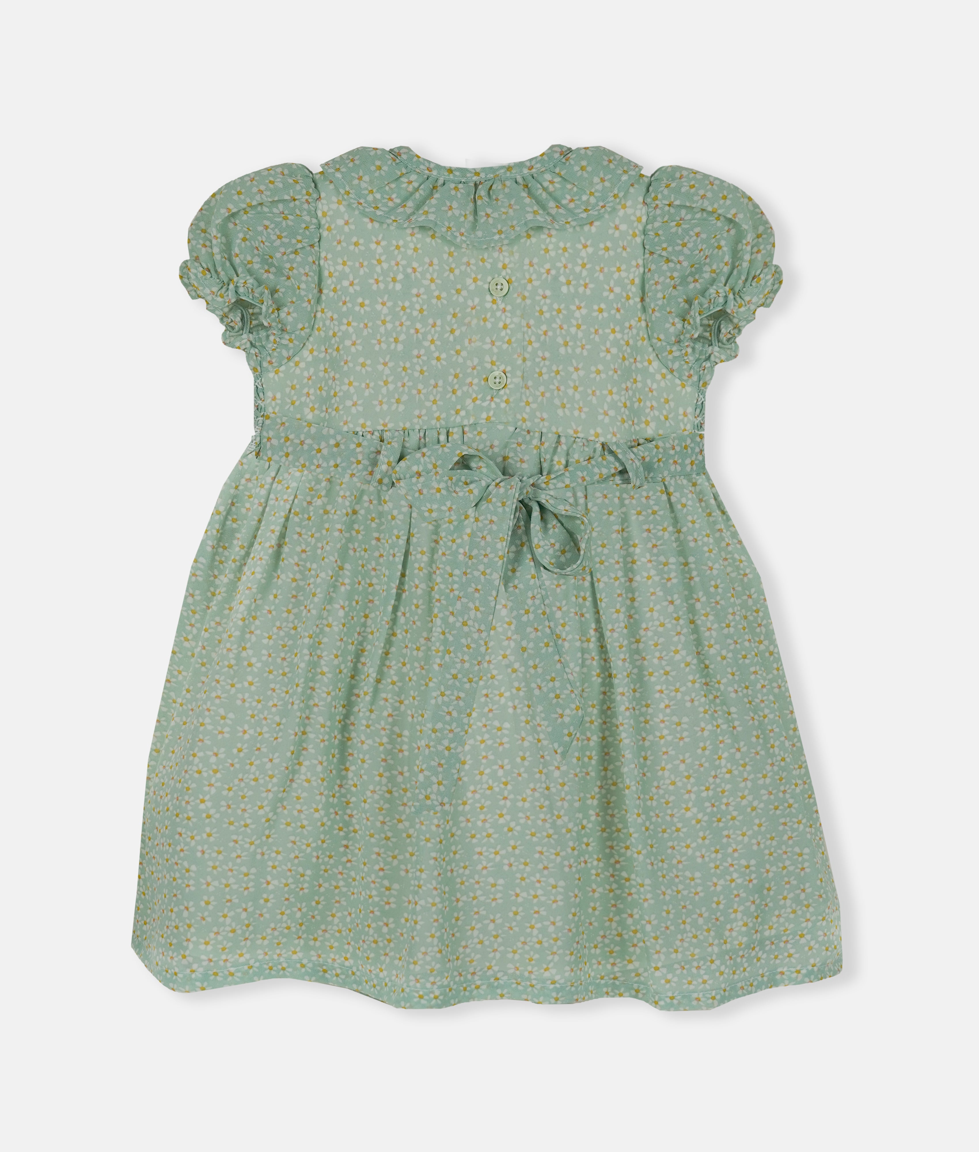 Pastel Pistachio Floral Collared Girls Smocked Dress