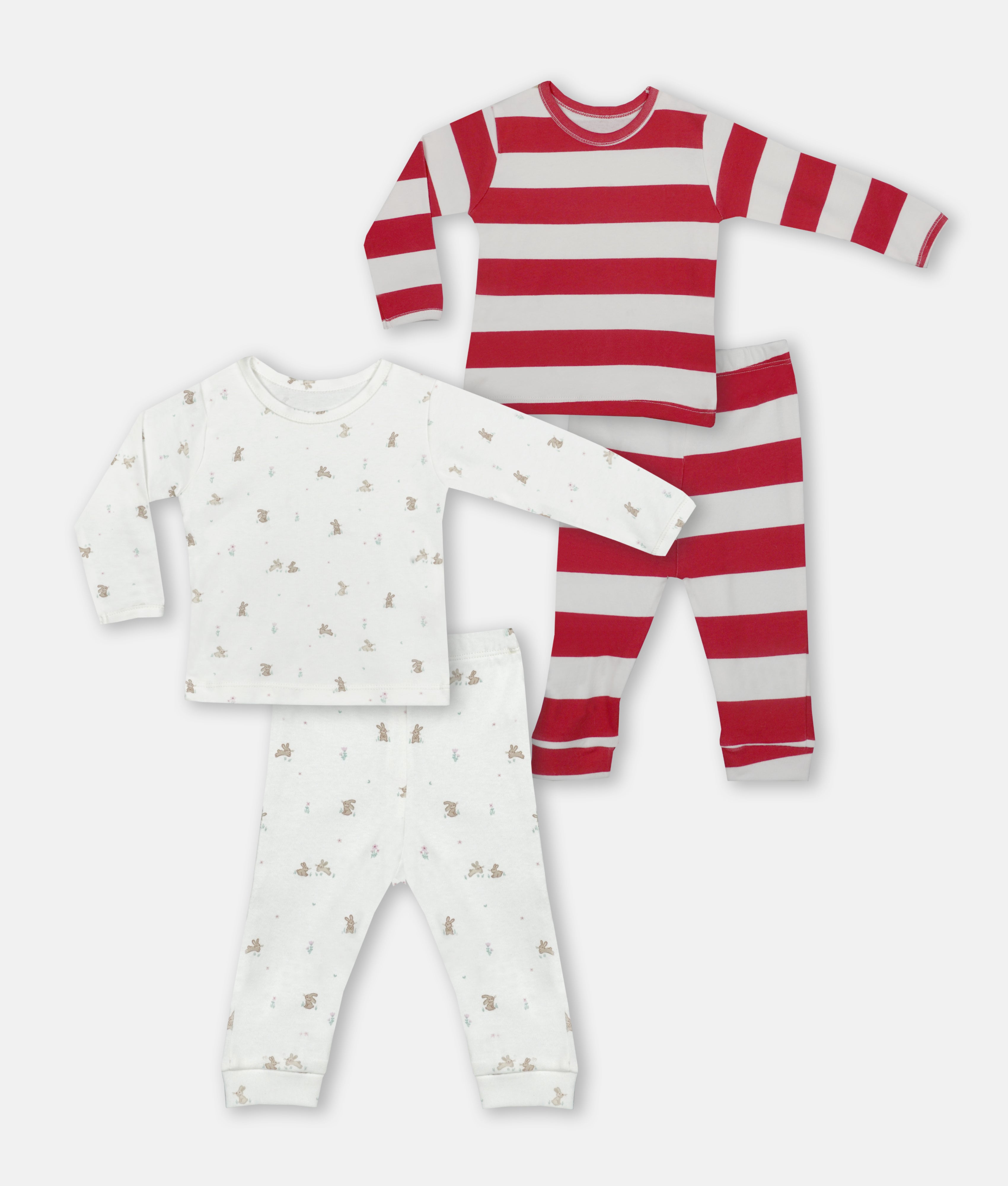 Bunny Rabbit & red strips 2Pcs Baby Pyjama Set