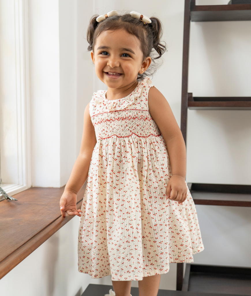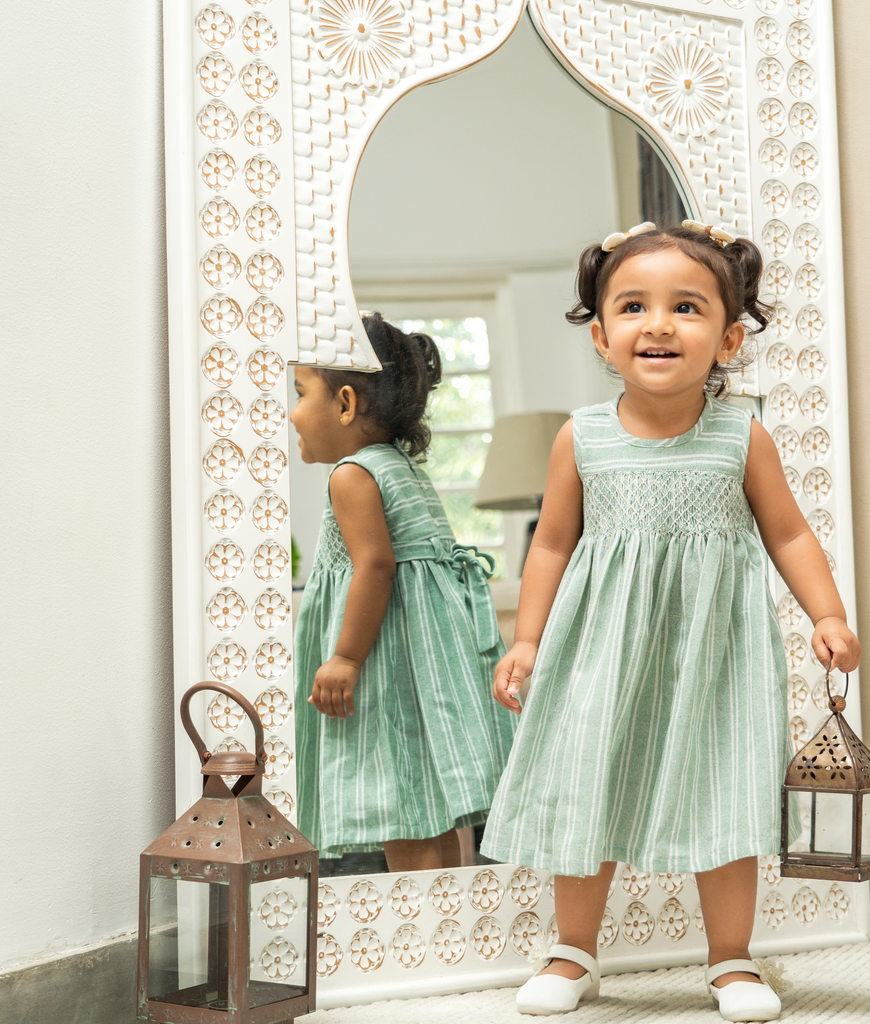 Dove Mist Gingham Hand-Smocked Girls Dress