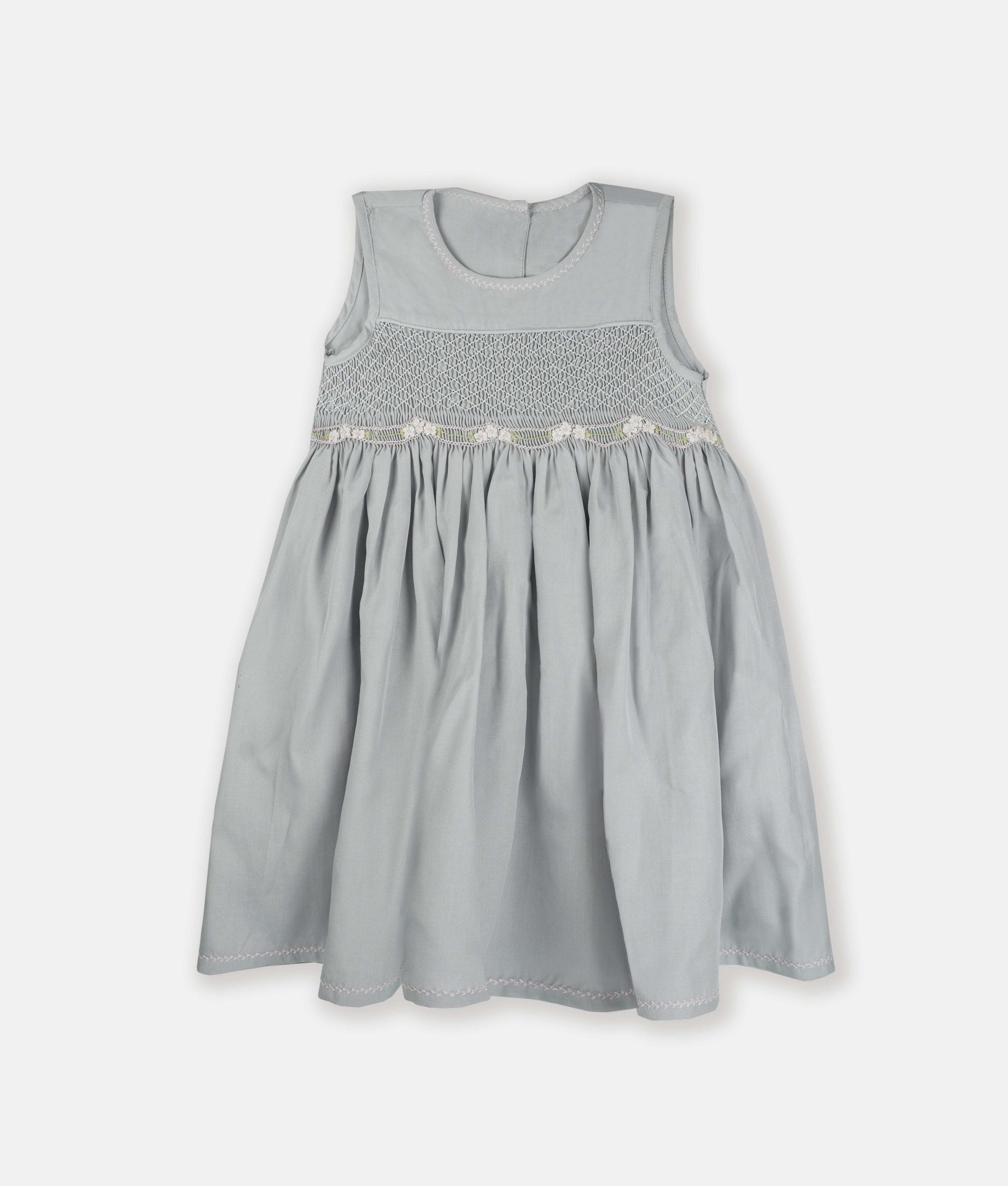 Silver Bloom Flower Embroidery Smocked Girls Dress