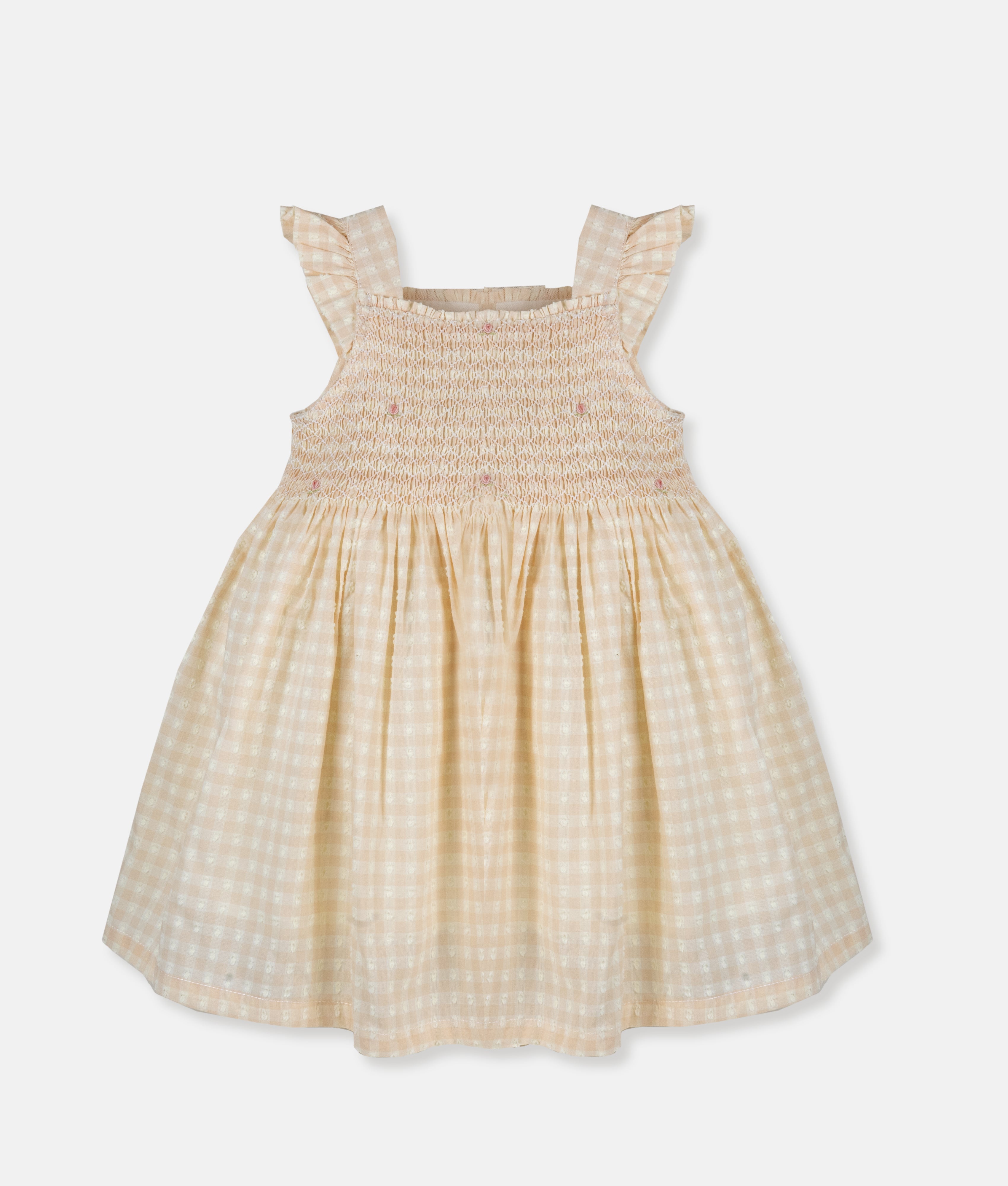 Peach Mist Gingham Hand-Smocked Girls Dress