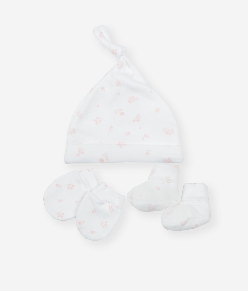 Baby Socks, Mittens & Cap Set - Pink Blossom