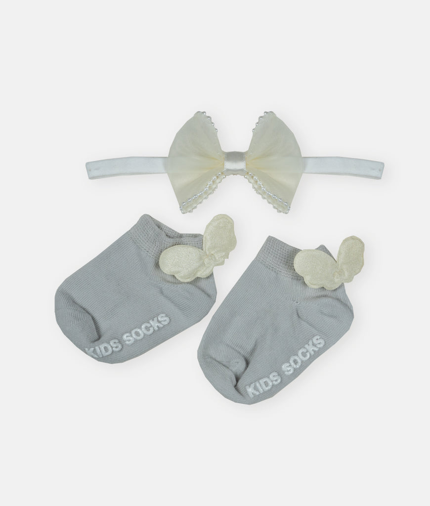 Ballerina Baby Socks and Hair Band Set - Ivory Pearl