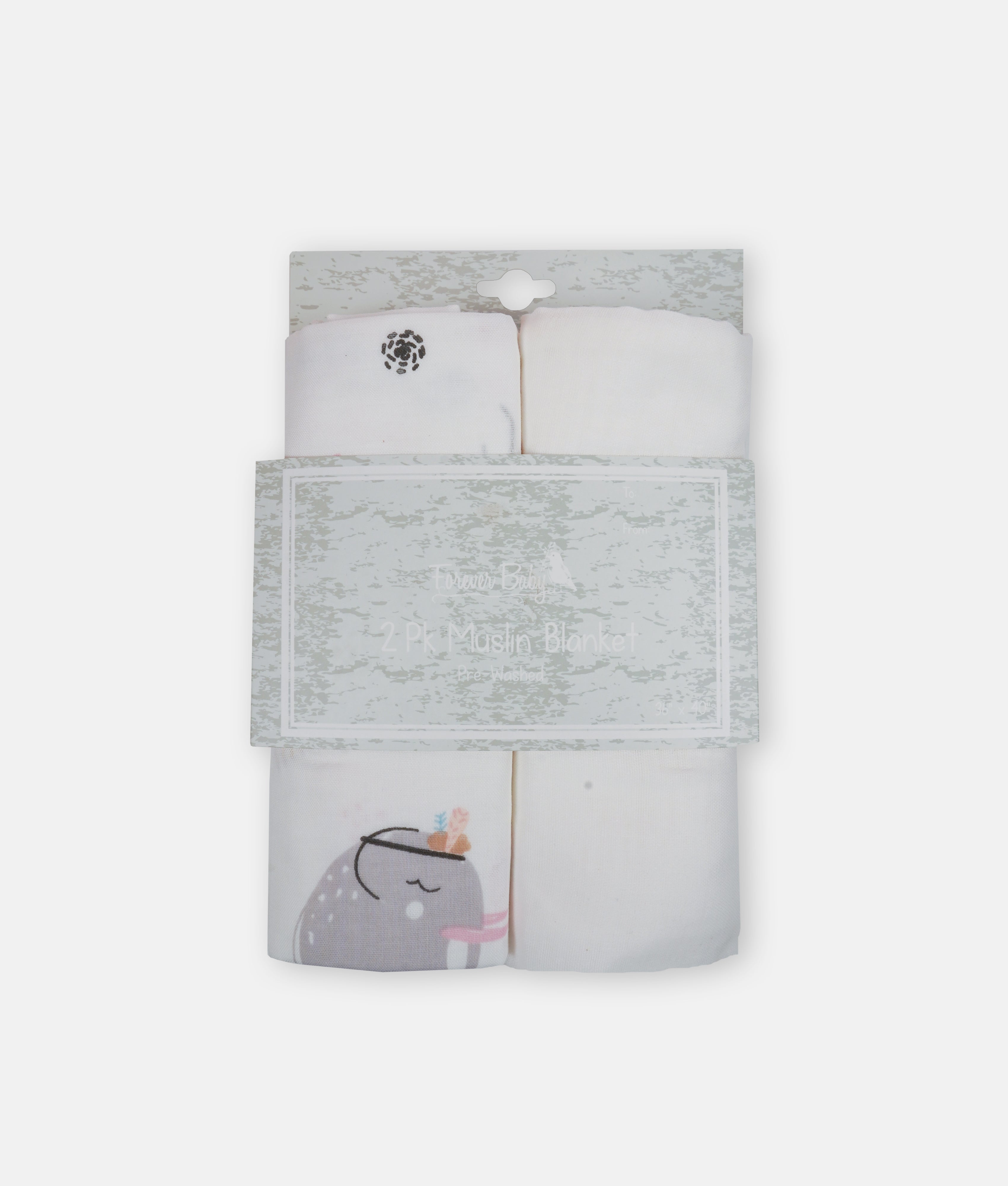 Muslin Cotton Blanket 2pc set - Plane Ivory & Rosy Floral