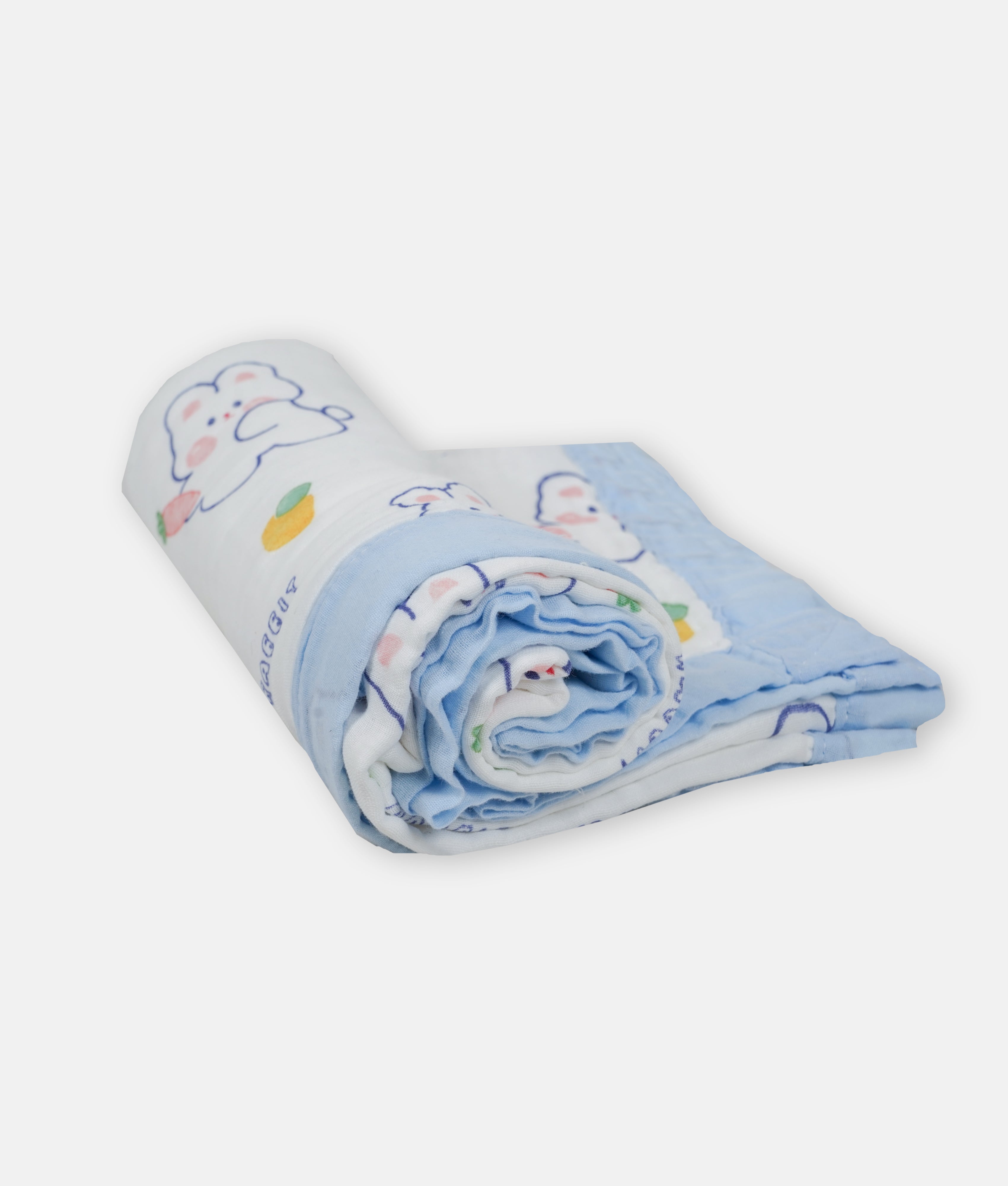 Muslin Cotton 6 Layered Blanket - Carrot Hugged Bunny - Blue