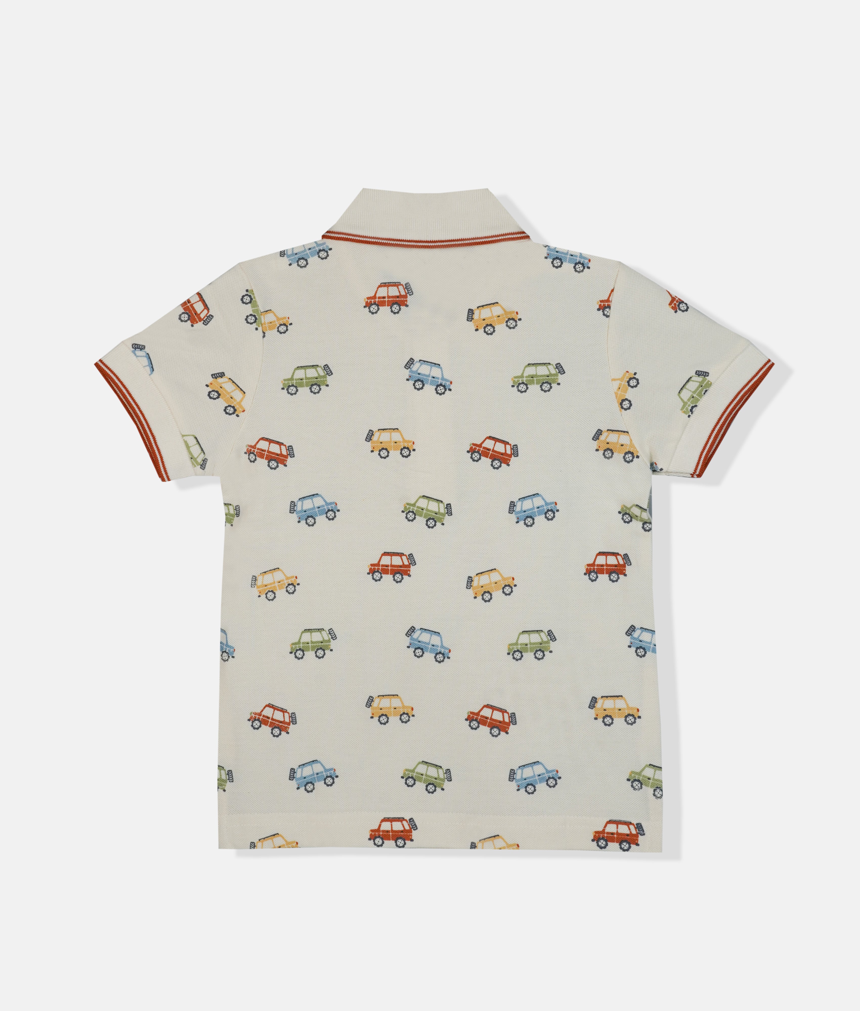 Cream Boys T-Shirt - Mini Vehicle Print Red Border