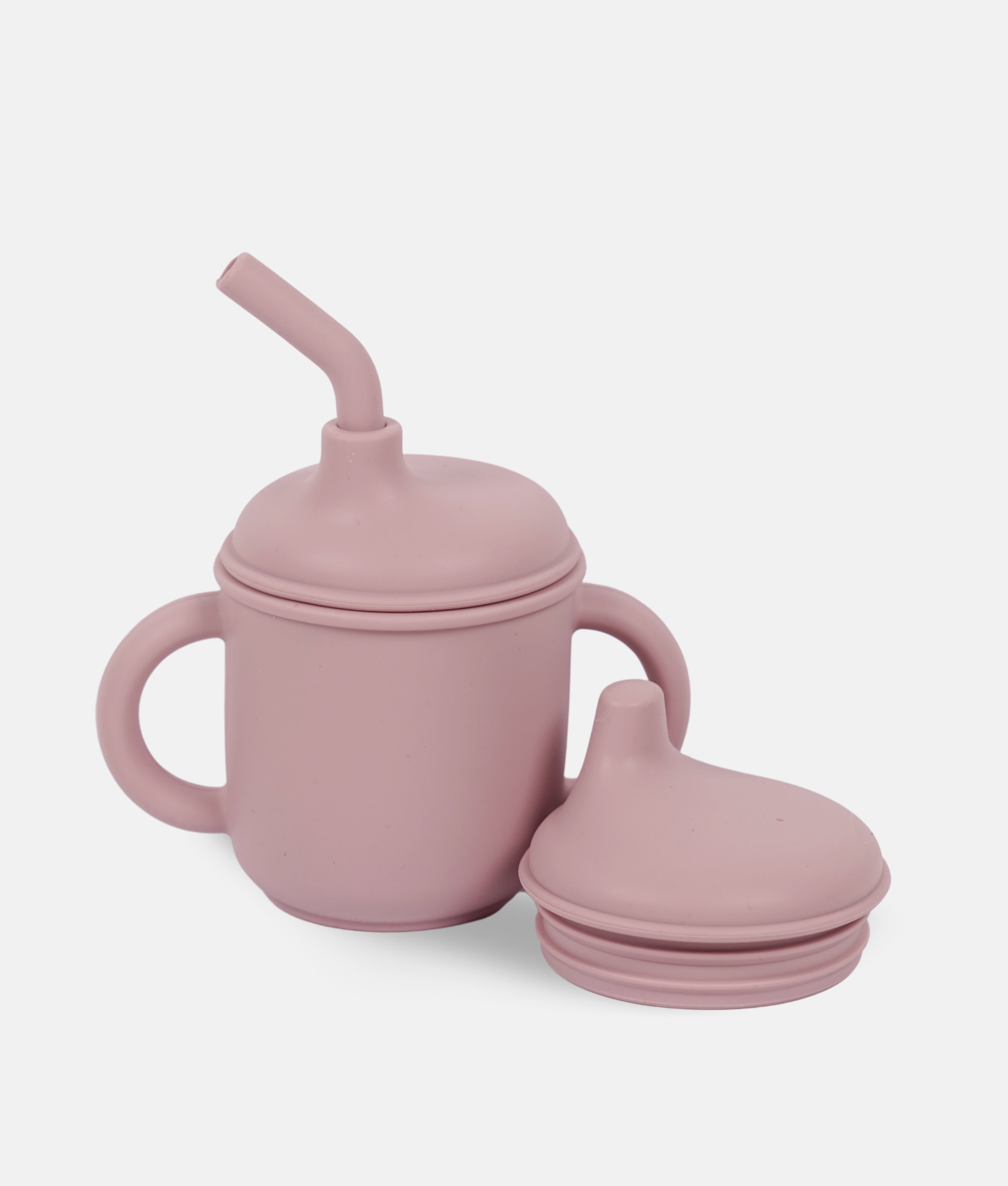 Silicone Training Cup + Straw + Lid - Dusty Pink