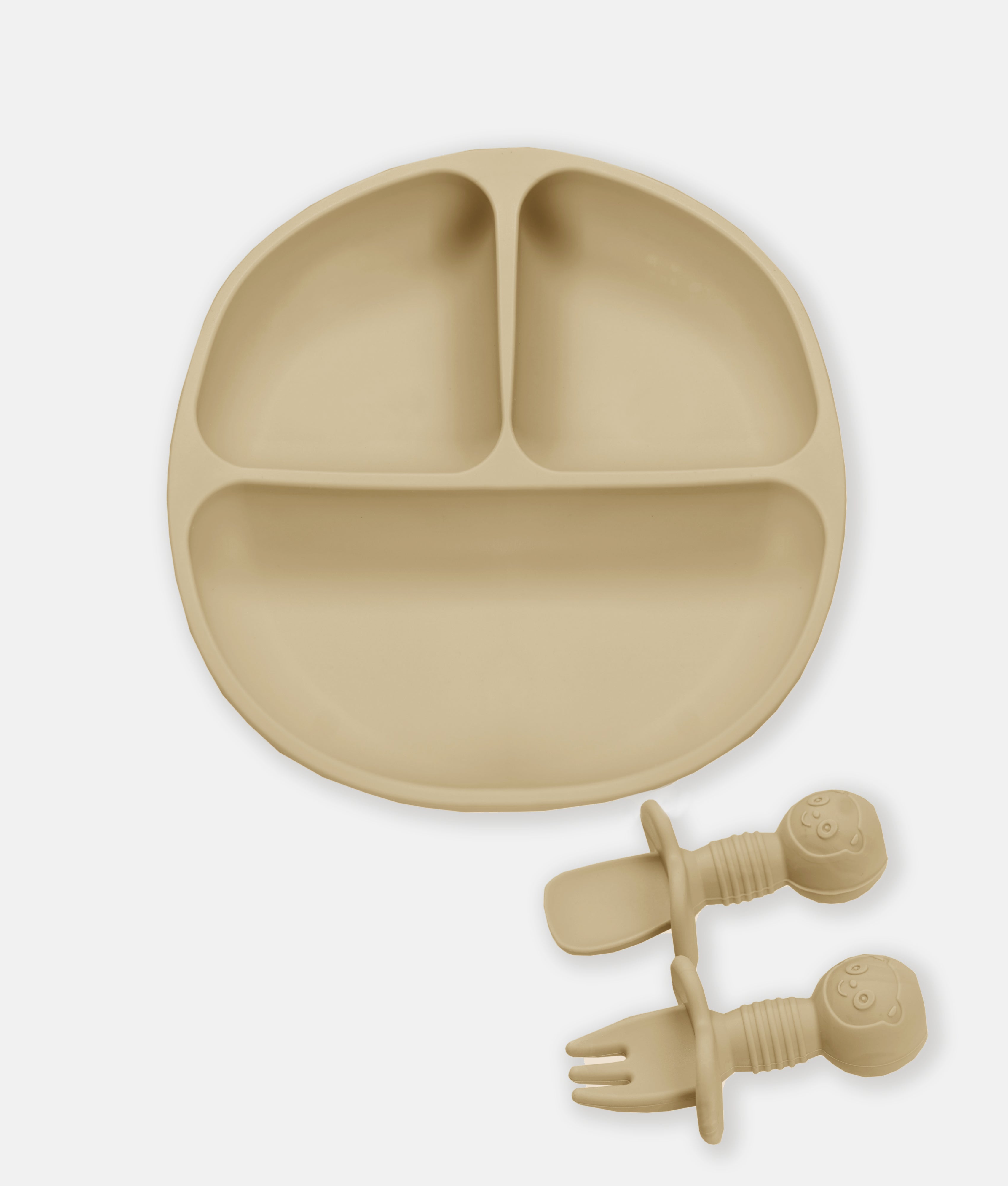 3 Compartments Silicone Suction Plate & Spoons Set - Beige
