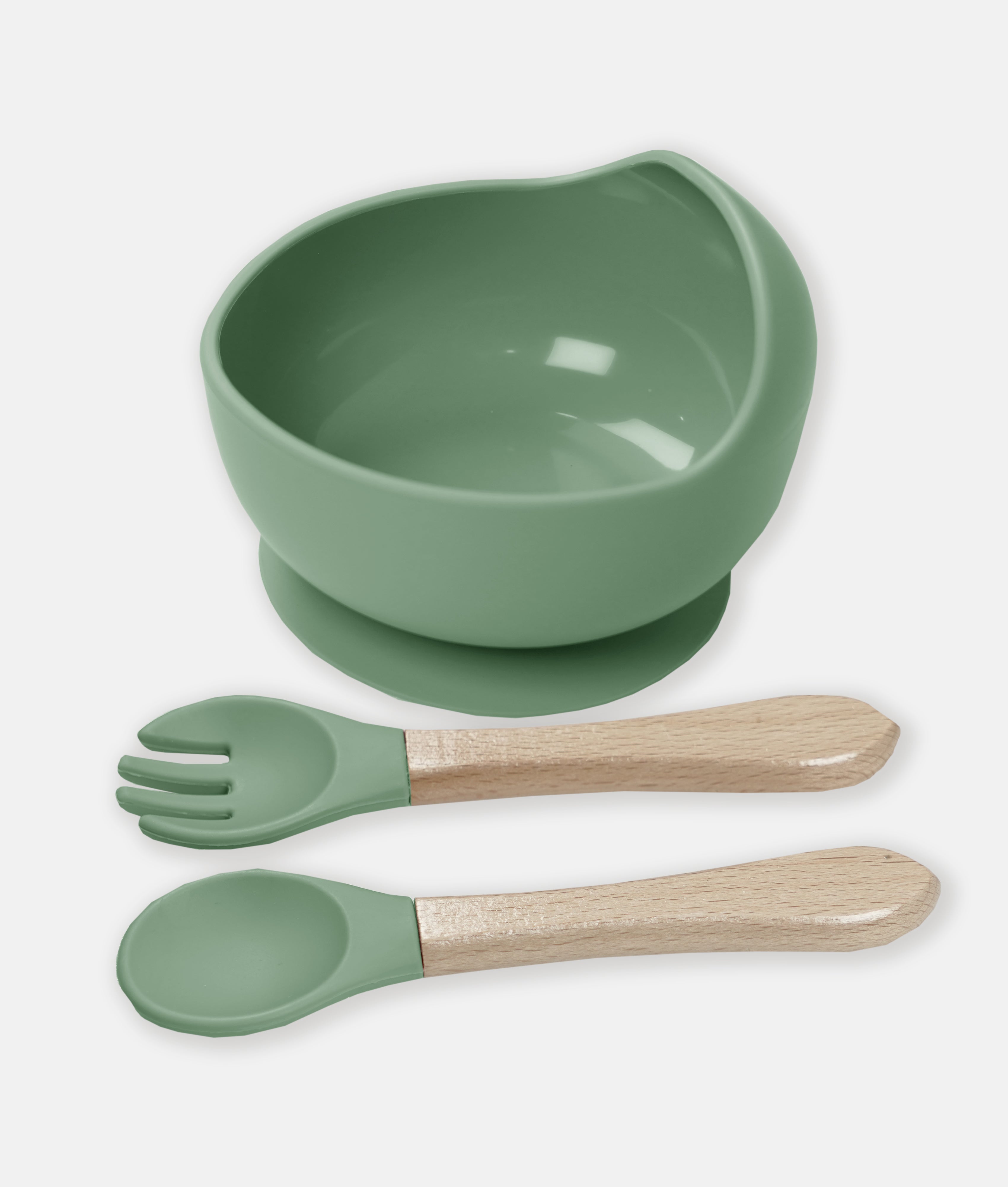 Silicone Baby Bowl & Spoons Set - Moss Green