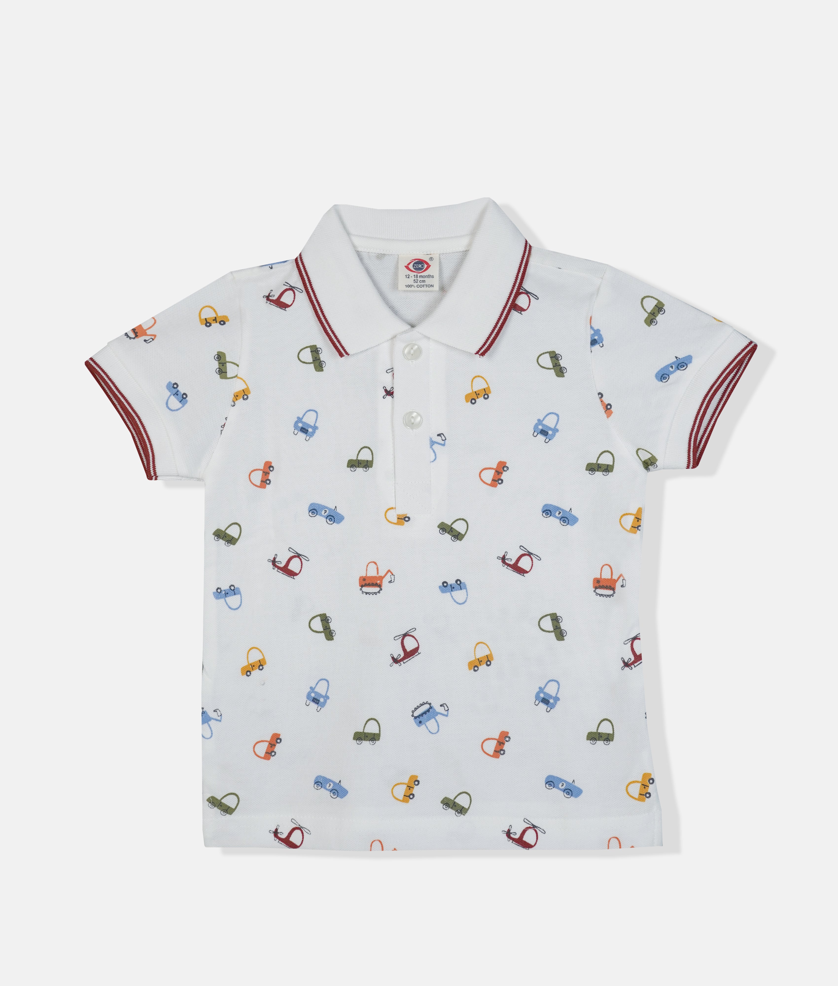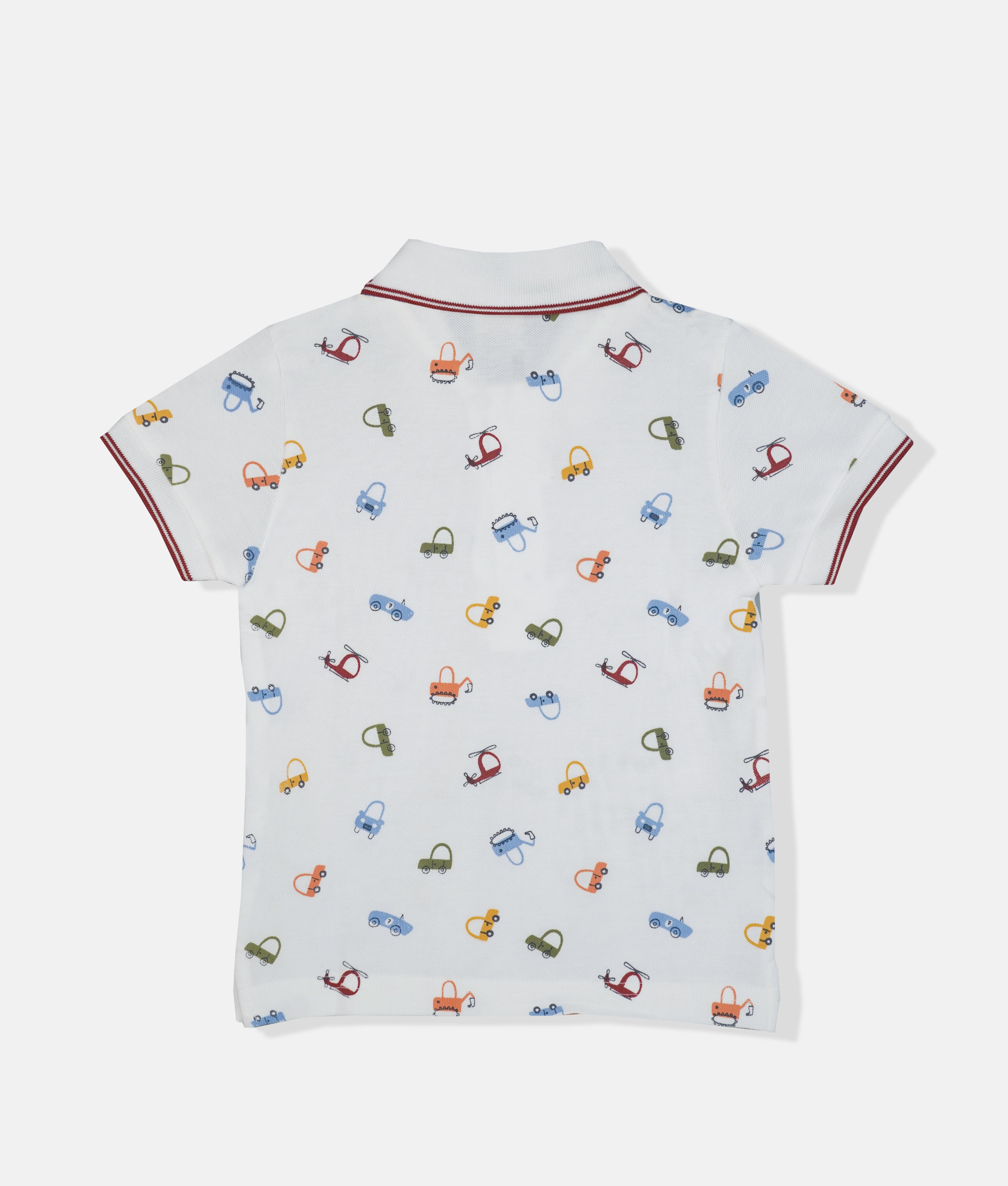 White Boys T-Shirt - Mini Vehicle Print Red Border