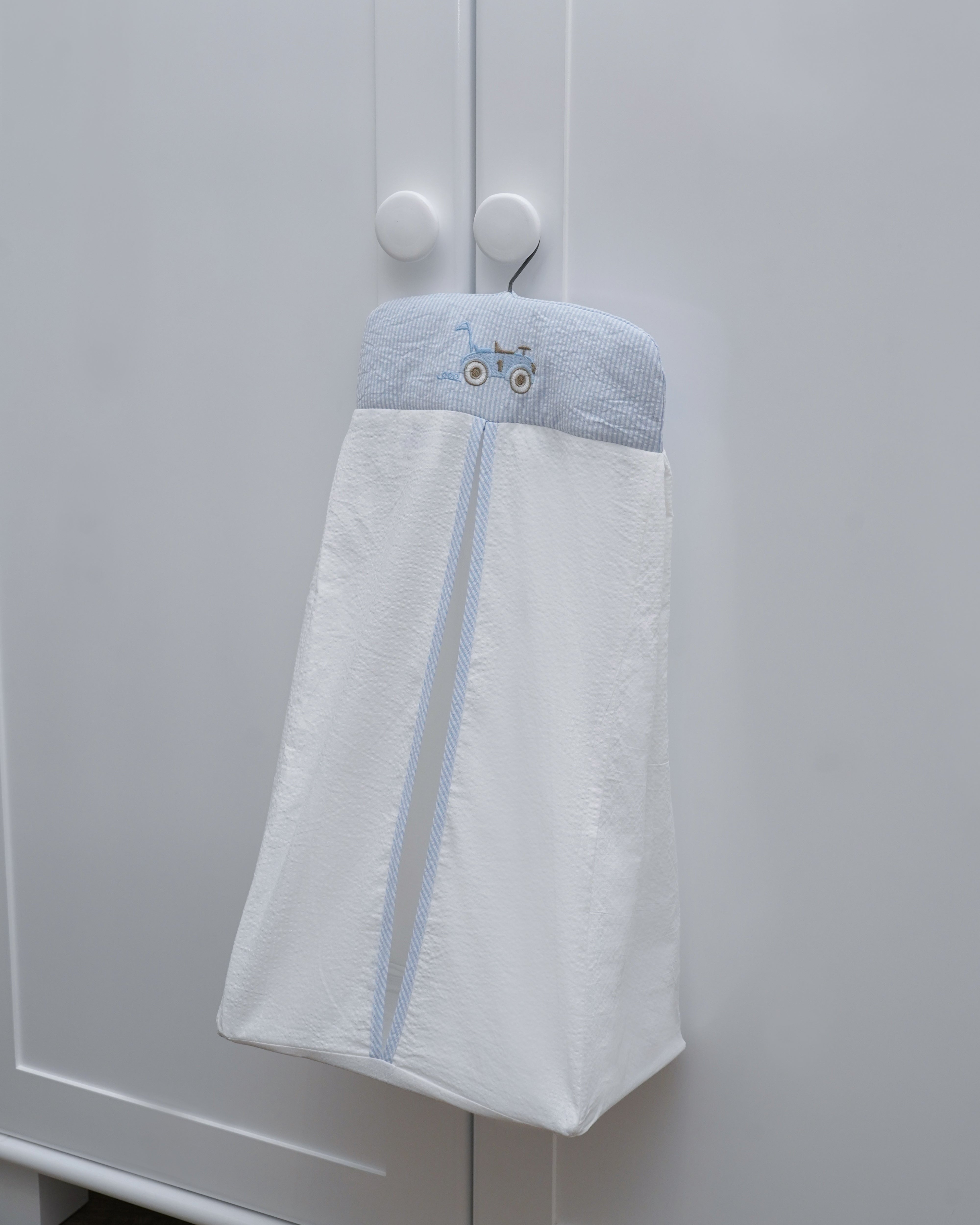 Nappy Stackers are our favourite way to keep things organised within the nursery. Allowing you to store all the nappies in a neatly, whilst providing easy access when changing your baby. Can be hung on the back of a door, off a changing table, on the side of the cot, anywhere convenient for you! Once your little one has grown out of nappies, try using the nappy stacker to store their favourite soft toys. Comes with a removable hanger.