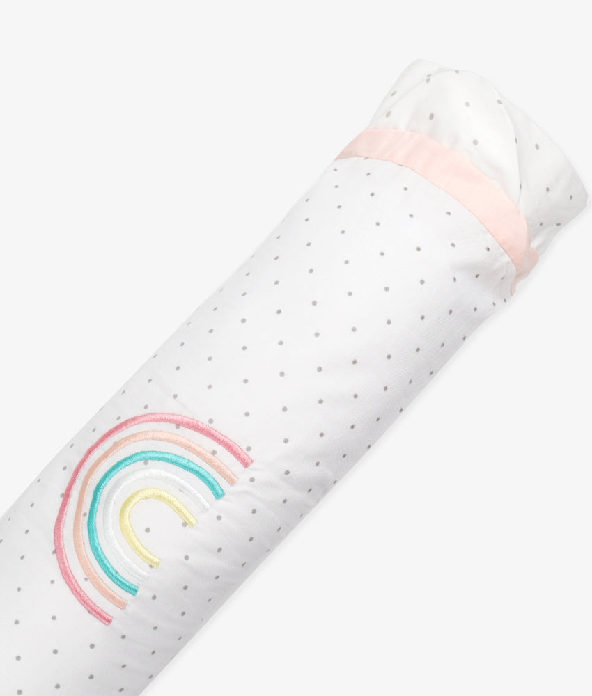 Baby bolster is made to perfectly cuddle and comfort baby when sleeping. The perfect decorative element for the cot, completing baby’s room. With the pillow case made from high quality 100% cotton fabric, to keep your little one comfortable. Available in a variety of colors and designs, to match your baby's nursery.Â