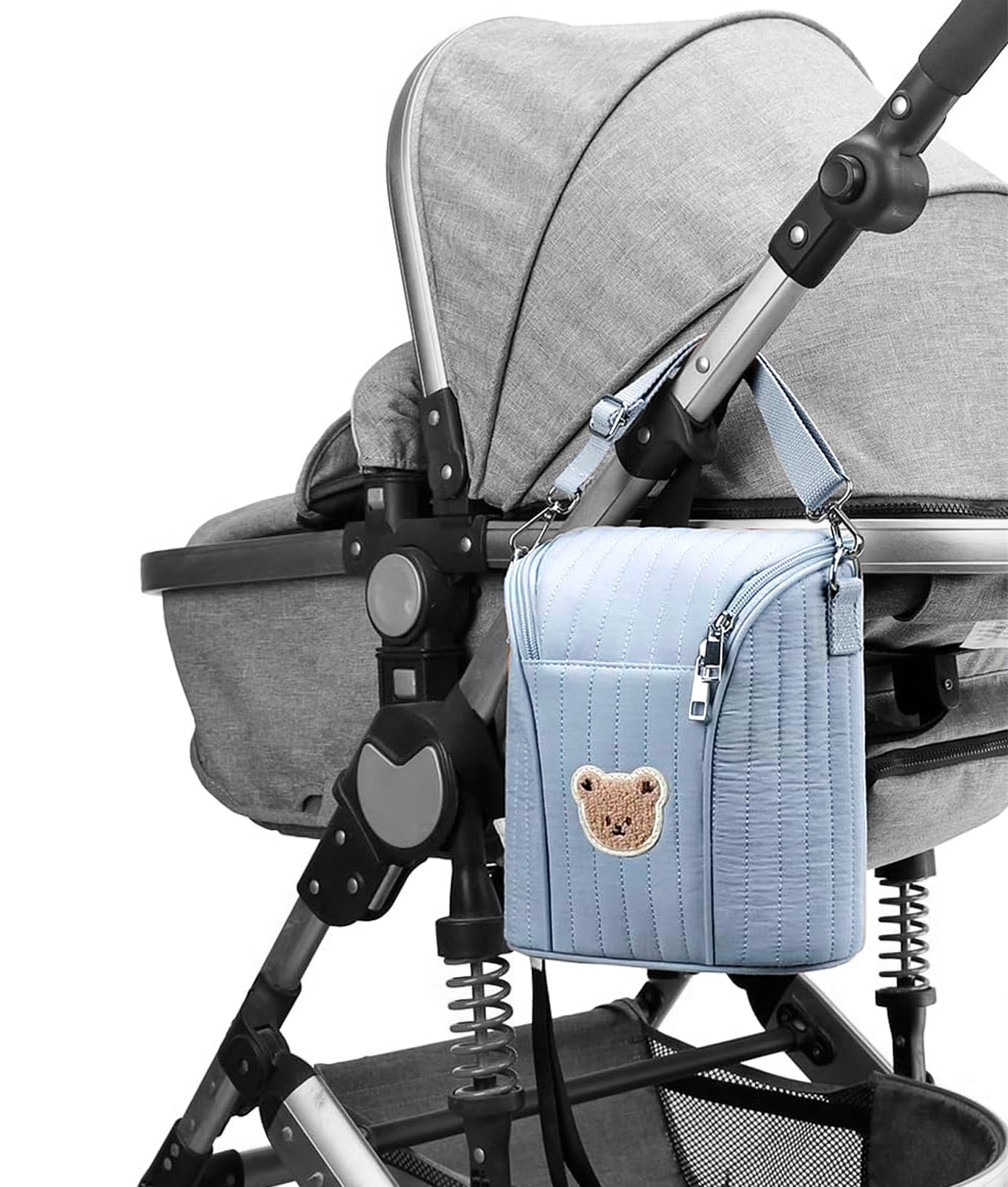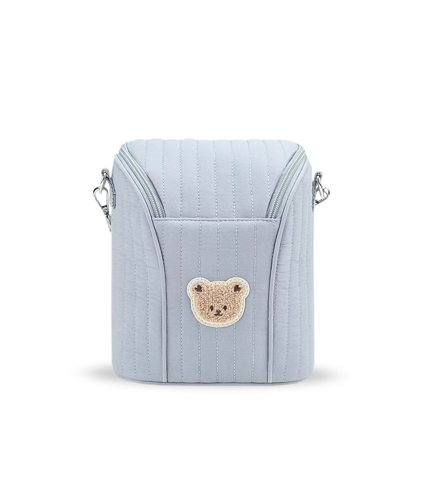 Keep your baby's bottles at the perfect temperature with this classic bottle bag. Crafted from soft cotton with charming bear patch detailing, it features quilted stitching for durability and style. The aluminum-lined interior maintains warmth or coldness for hours, making it ideal for outings, travel, or daily use. Compact and practical, it's an essential accessory for parents on the go.