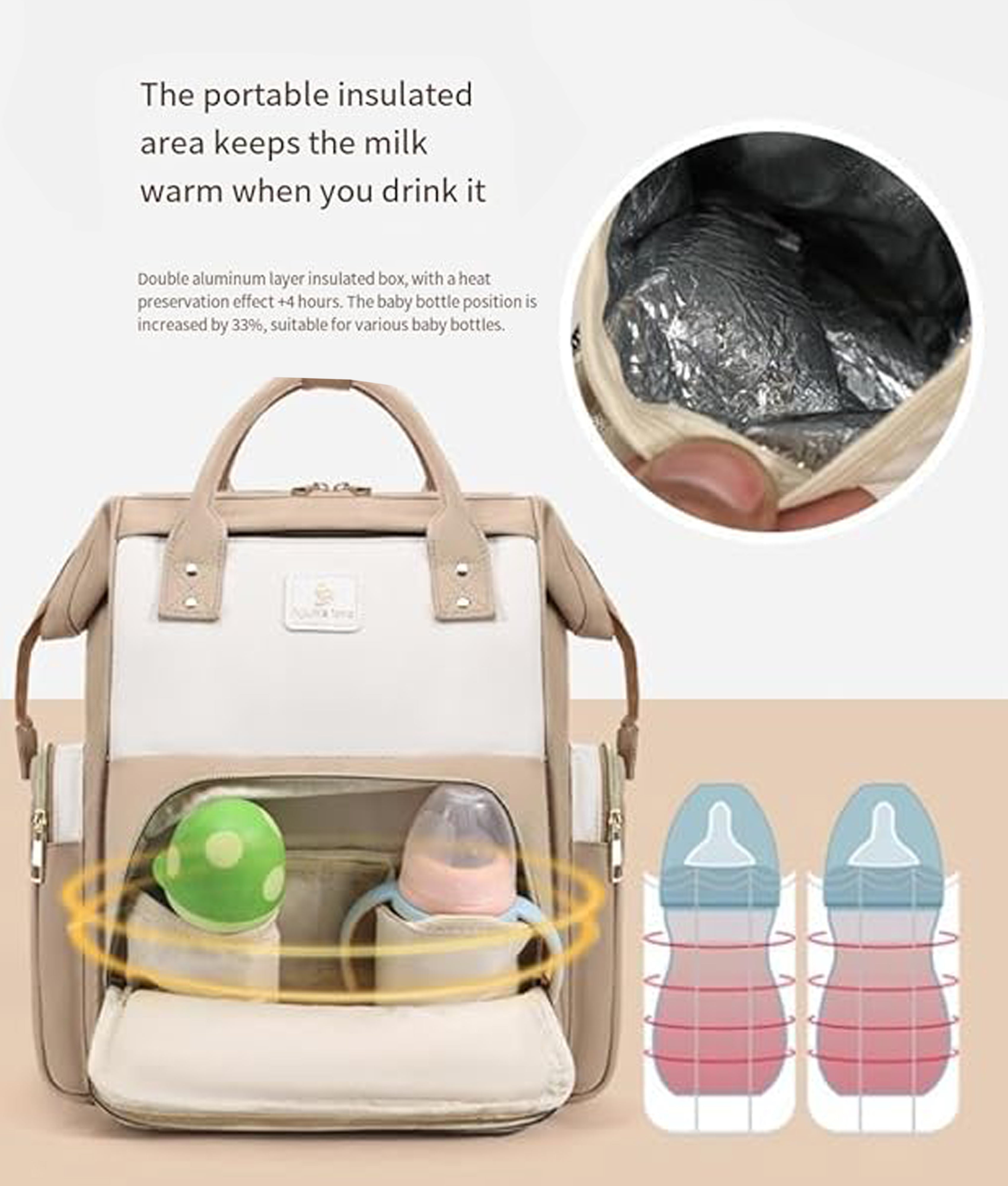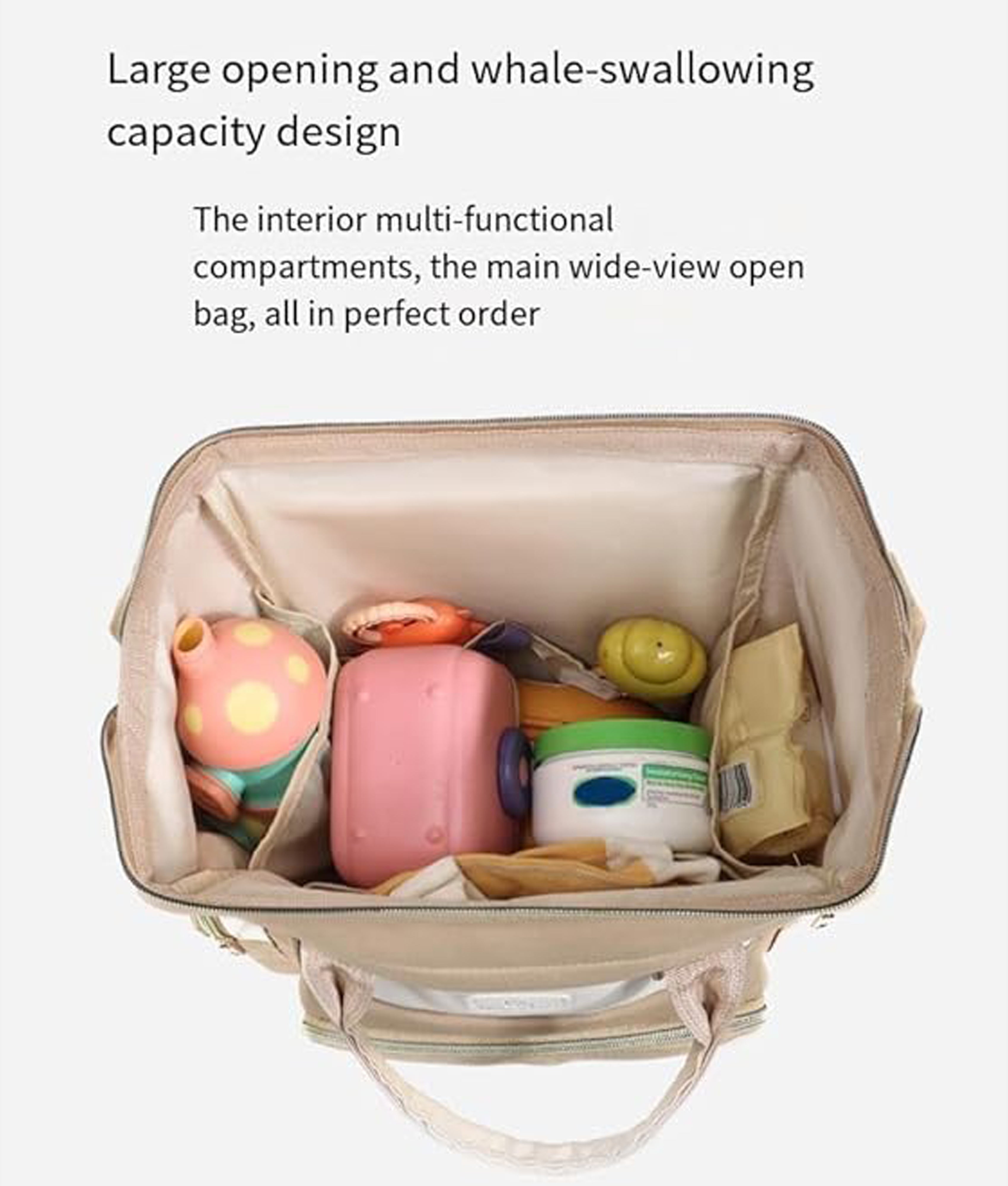 - LARGE CAPACITY DIAPER BAG! Smart organiser design with separate pockets and compartments for carrying all of baby essentials and mommy stuffs in an ultra-organised way, including diaper changing pad, feeding bottles, water bottle, breast pump, wet wipes, tissues, baby clothes so on.