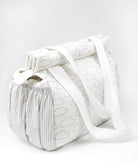 Our Baby Diaper Bag s the perfect companion for mums on the go, perfect for everyday use and light outings with your little one. This product features two side pockets and dividers inside to organize and carry those essentials you need, when you travel with your baby. Made from 100% cotton cover, and lined with easy to clean material for greater convenience. Â