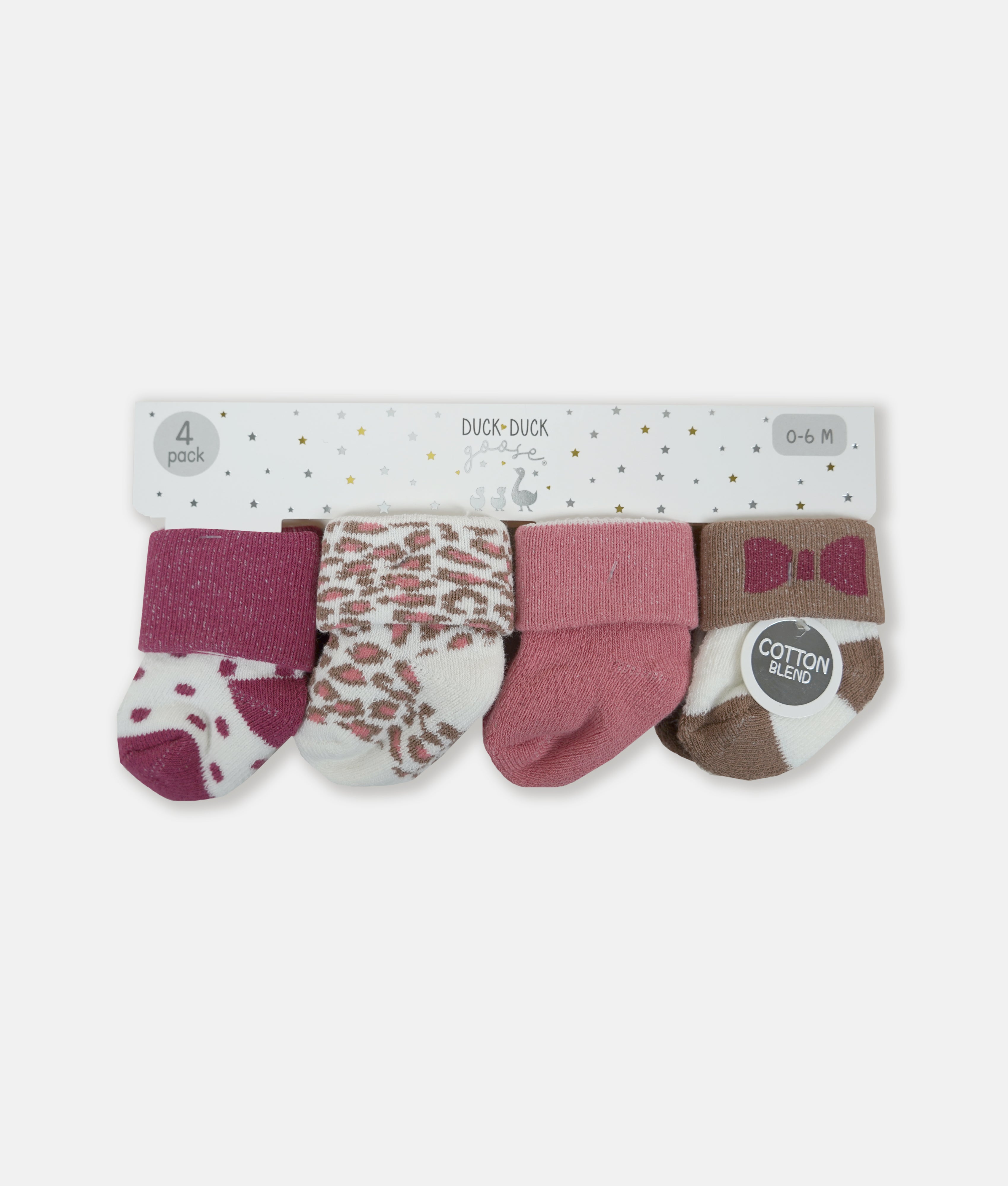 Baby Socks 4Pairs Set - Pink Leopard & Bow Mixed