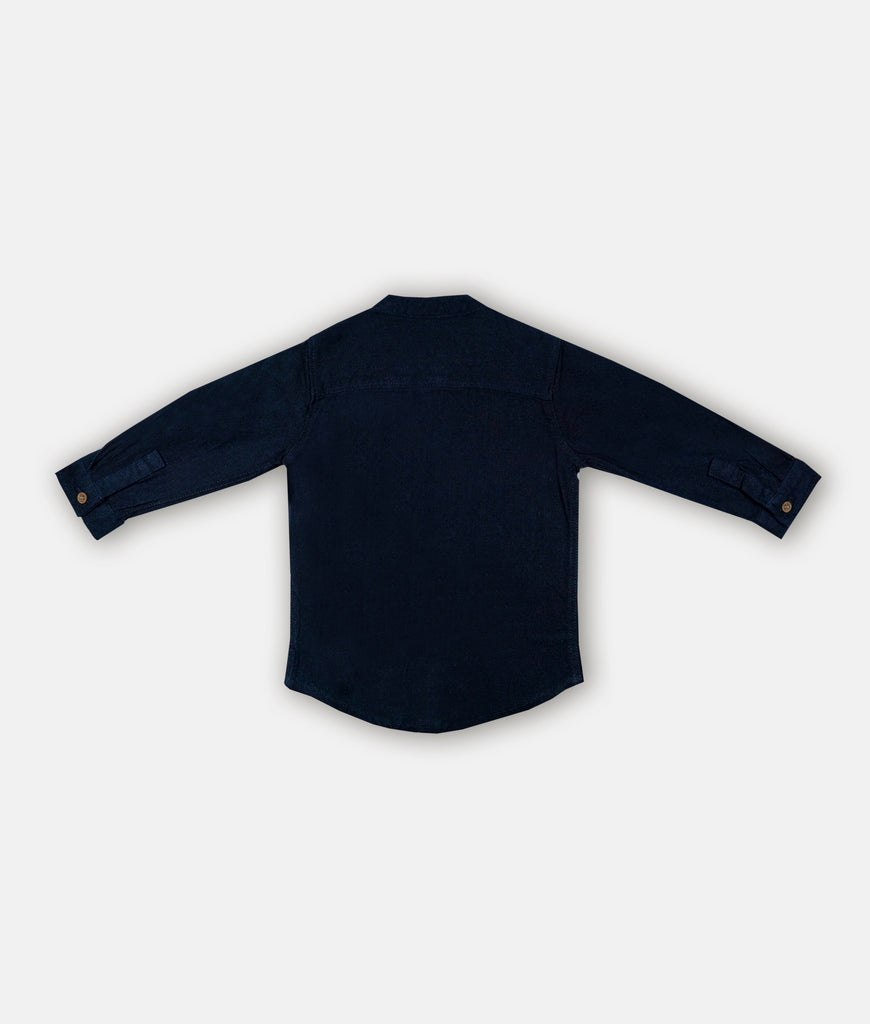 Boys Long Sleeved Chinese Collar Shirt - Navy Blue