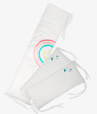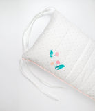 Cot Bumpers are essential for the safety of your little one as they start to move on their feet. A beautifully soft and padded bumper for your baby's cot with wide sides for greater comfort and protection. The outer fabric is made from high quality 100% cotton, and bumper cushions filled with poly-fiber padding. The cot bumper is fastened with ties.