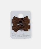 Girls' 2pcs Bow Hair Clips - Chocolate Brown