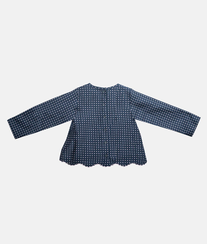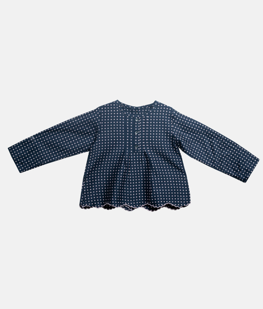Girls Long Sleeved Polka Dot Bishop Top - Midnight Blue