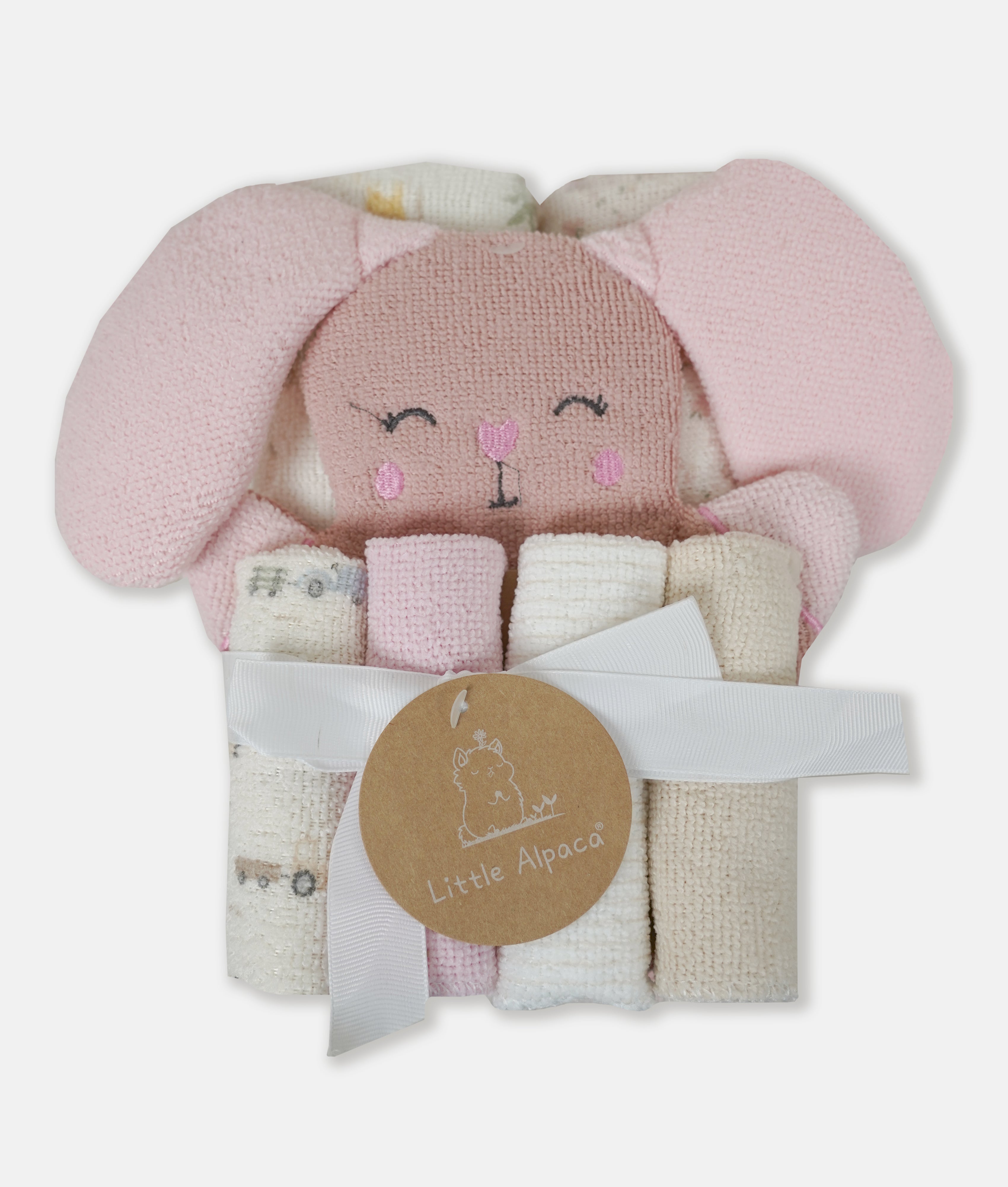 Hooded Towel & Washcloth Set β Little Alpaca Pink Rabbit