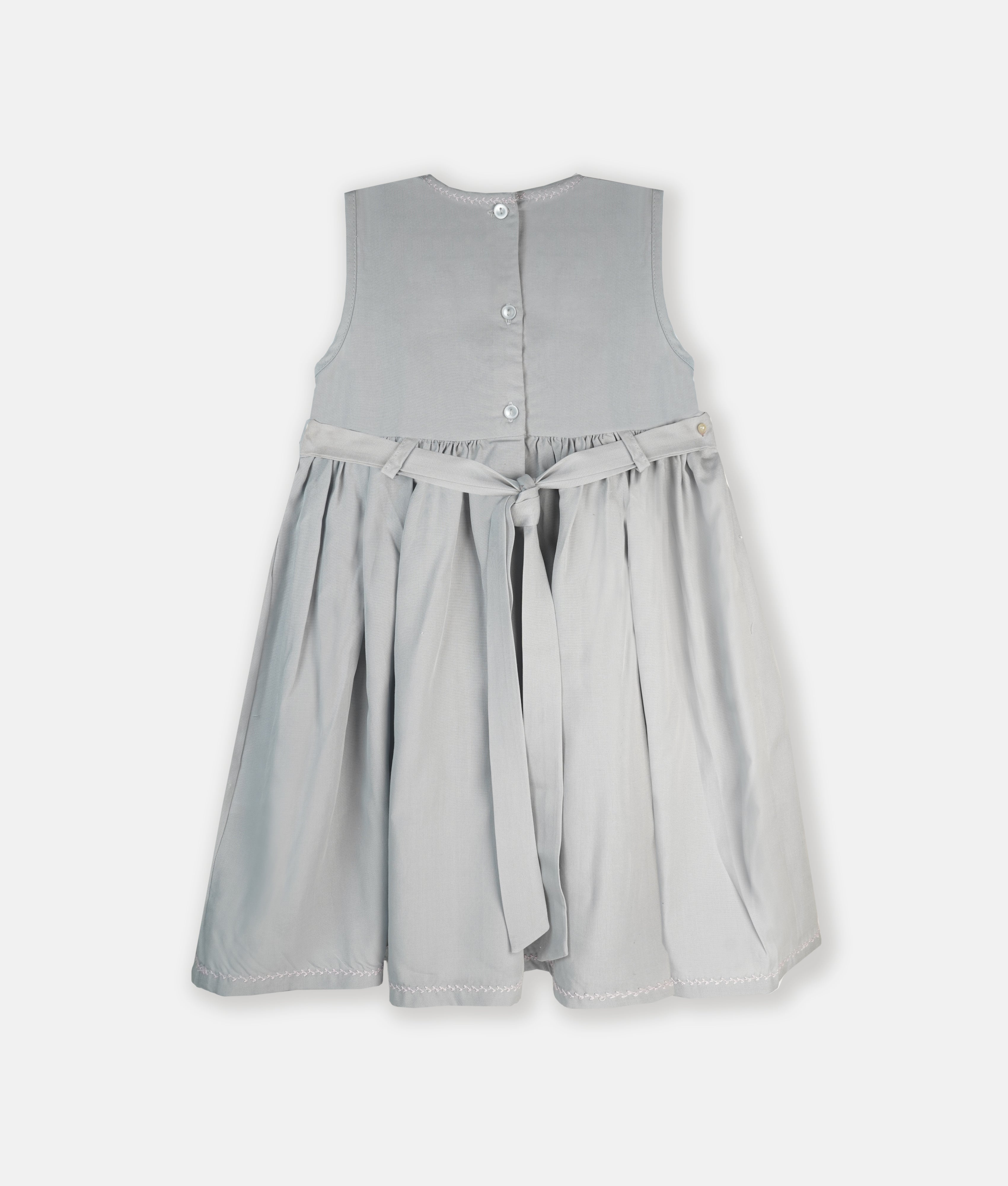 Silver Bloom Flower Embroidery Smocked Girls Dress
